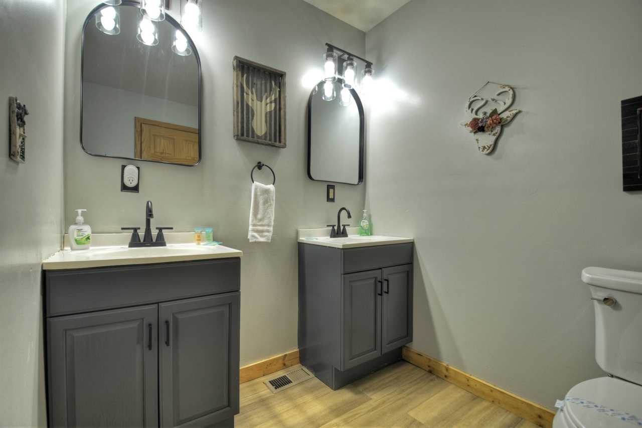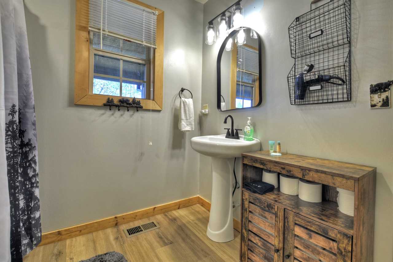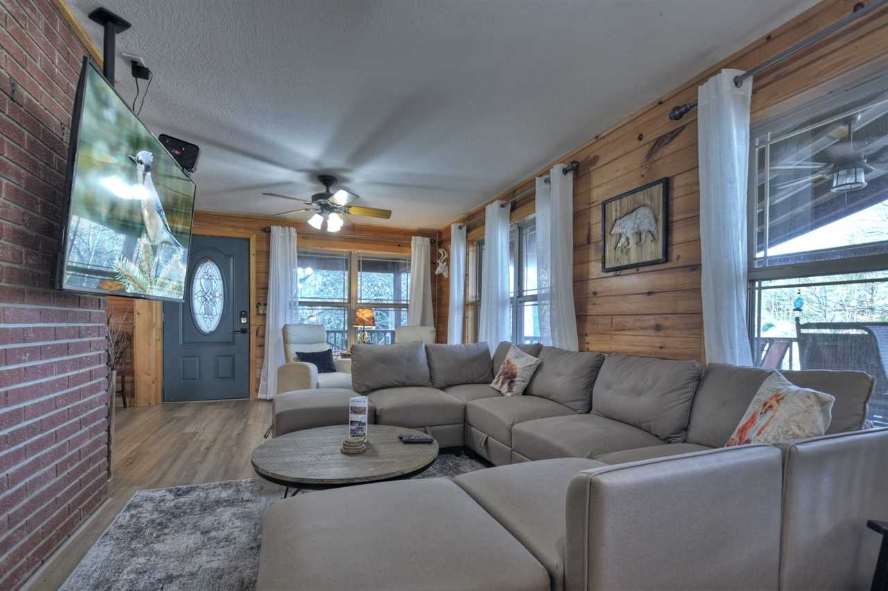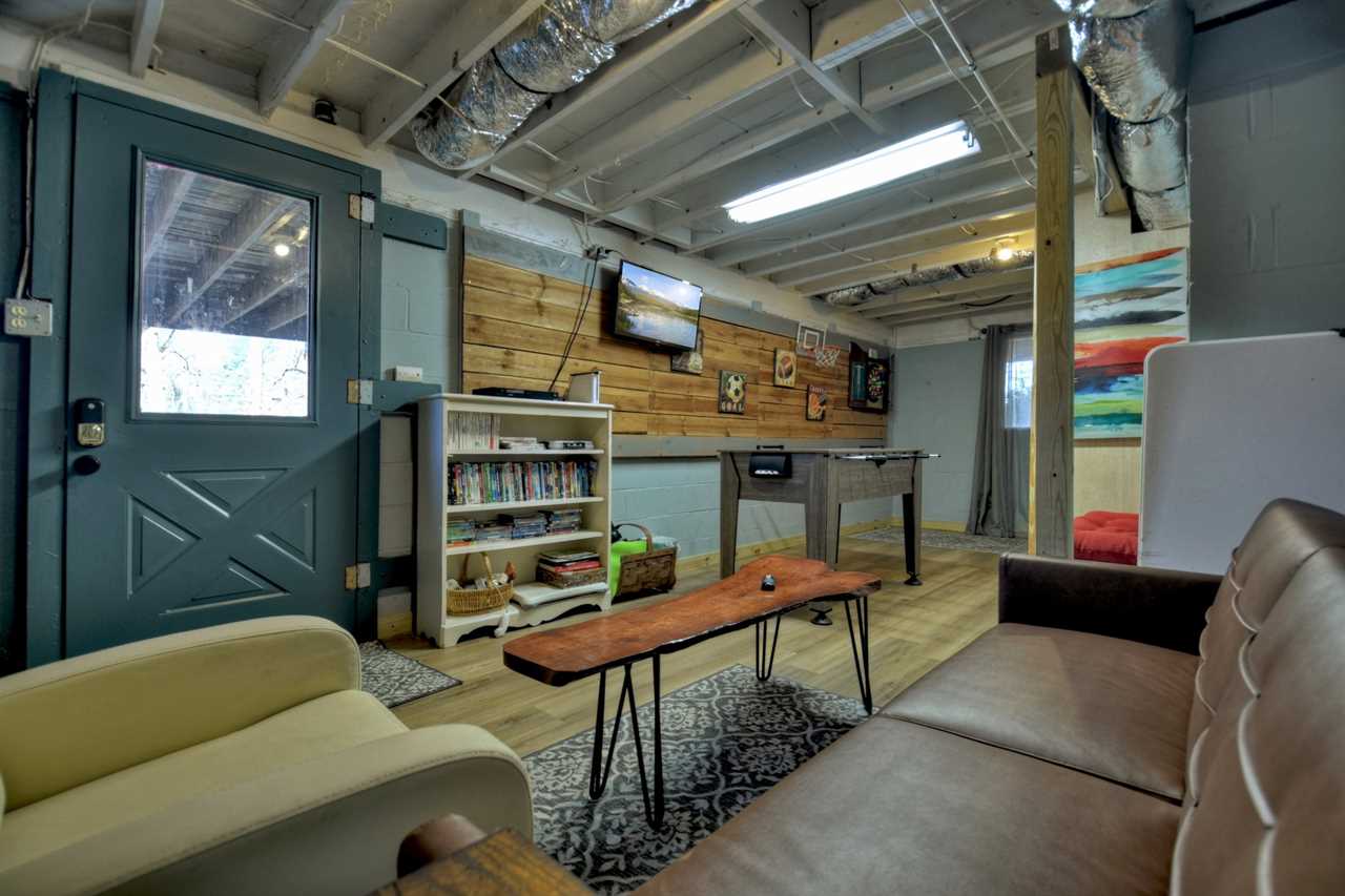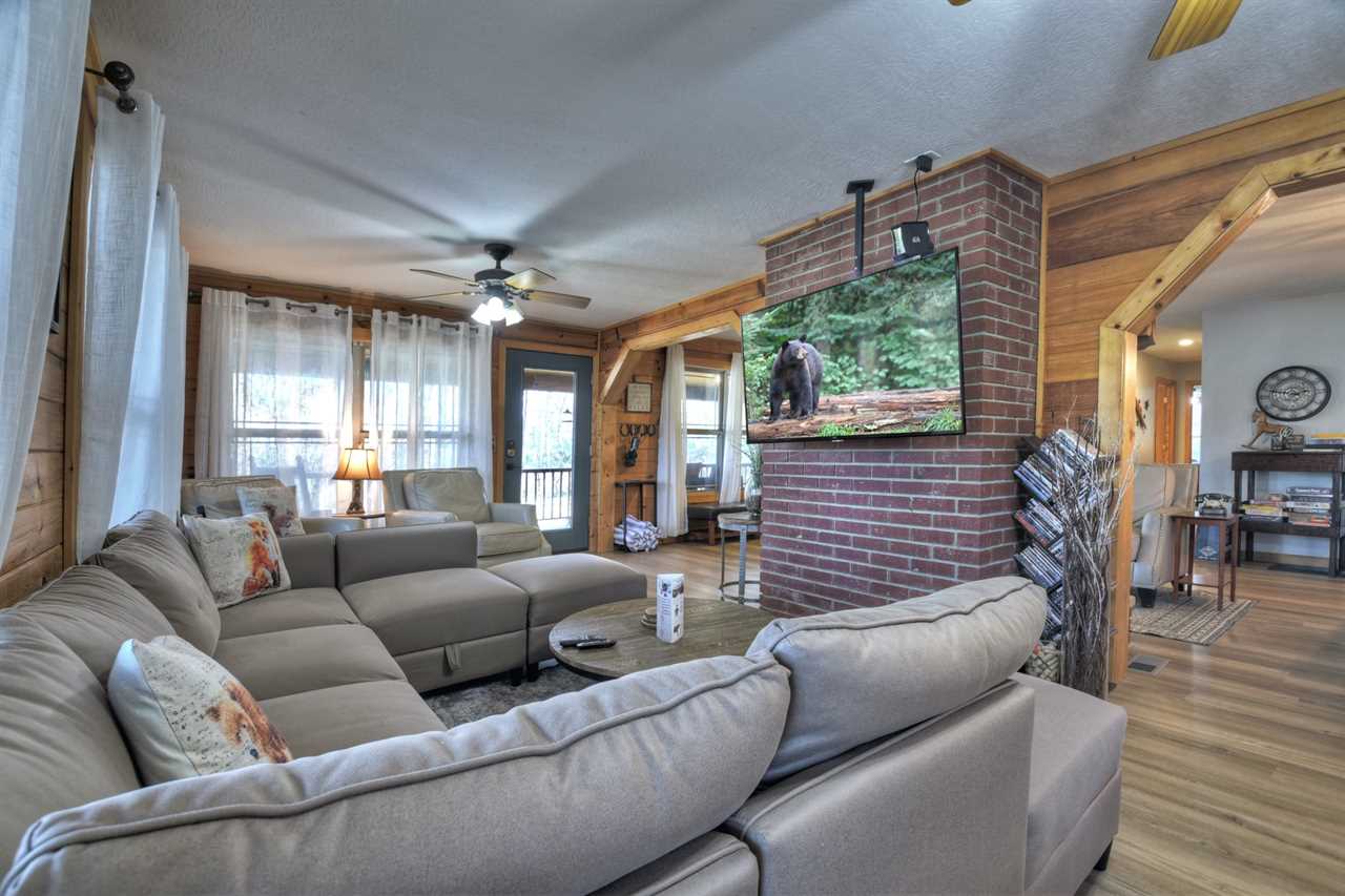 Start days with coffee in the fully equipped kitchen and breakfast in the dining area. Kick back with a good book by the fireplace or set up a movie night with the big screen TV and sprawling sectional. For more fun on your mountain getaway, this North Georgia cabin rental has a bonus game room in the basement** with a foosball table, chess set, and TV setup.