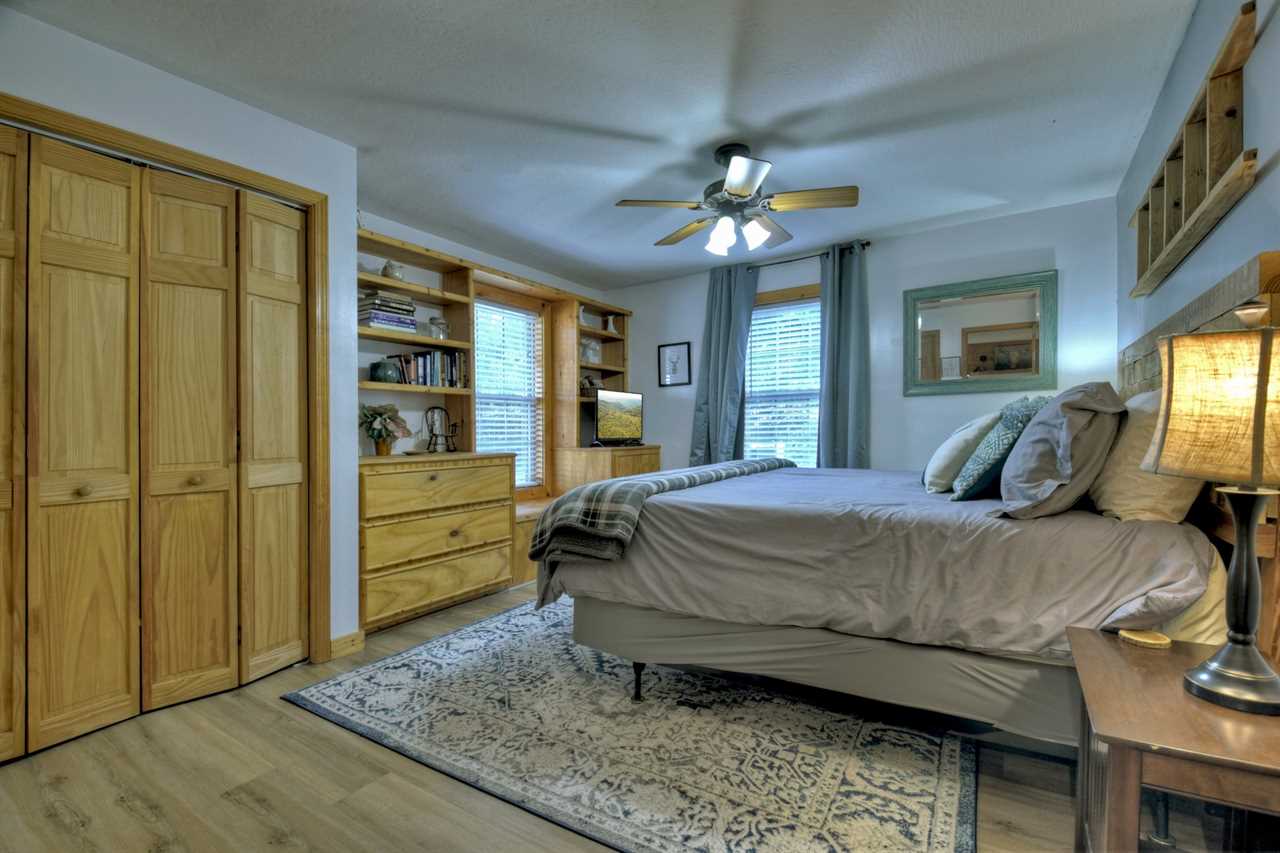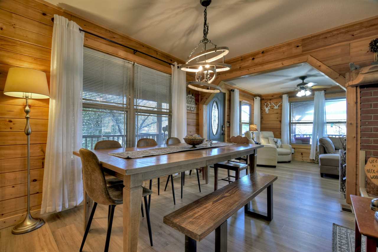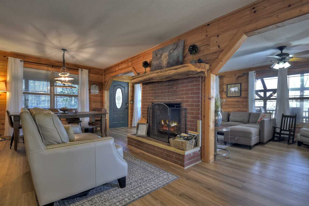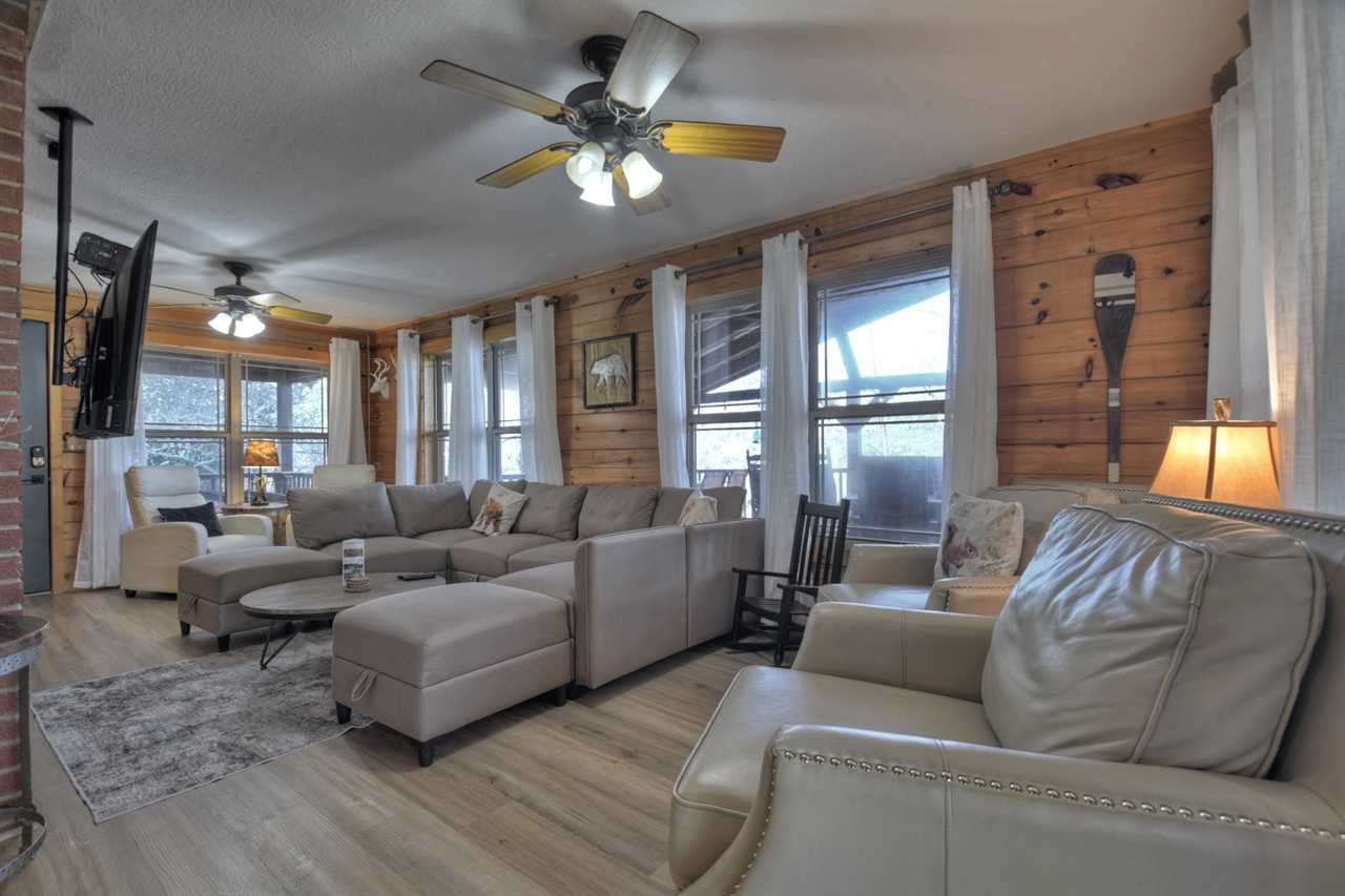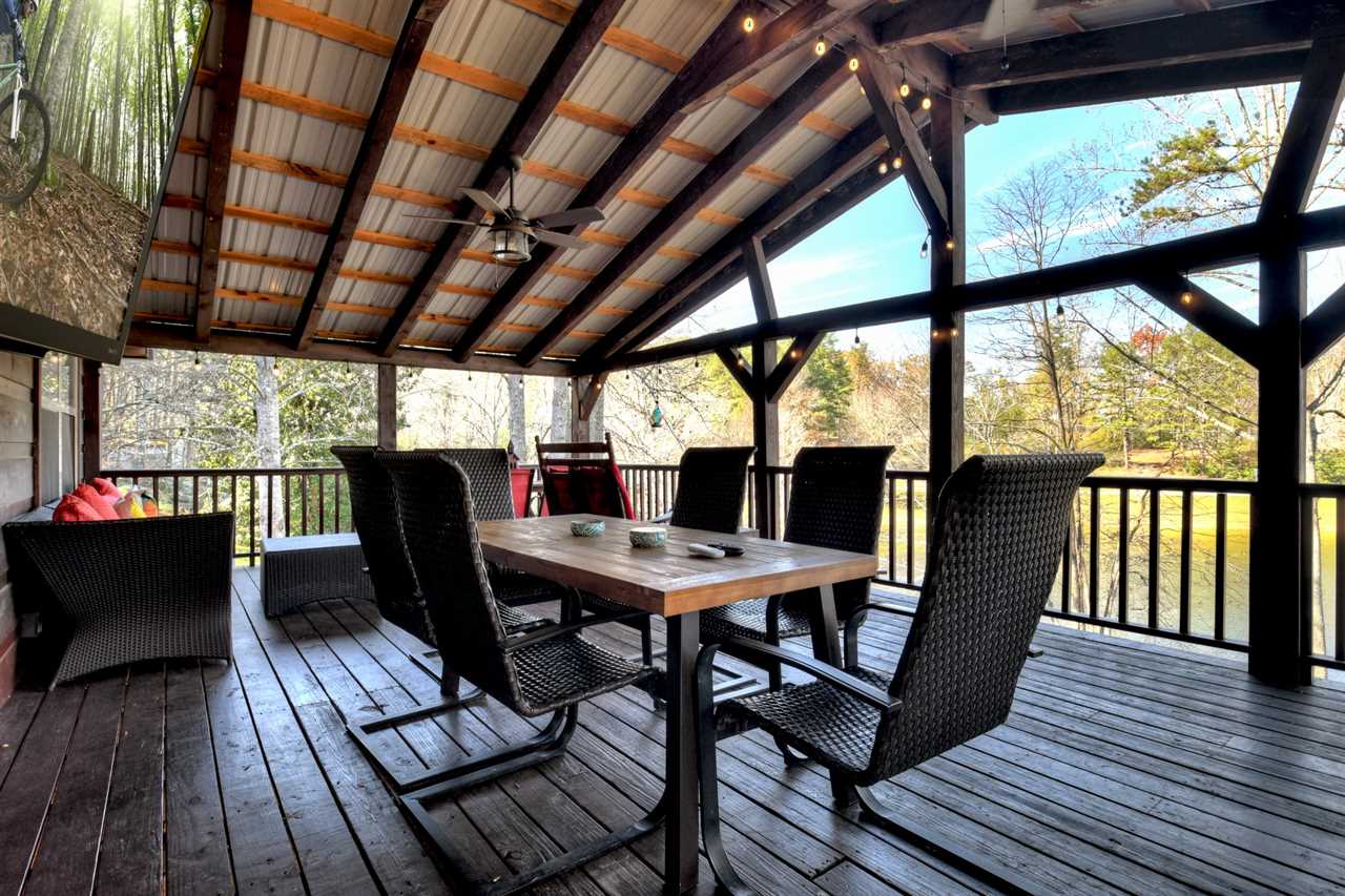 Outside, you'll have a spacious deck, covered porch, roomy yard, and tree-studded surroundings. Please note the driveway is steep and gravel, with room to park a trailer. This lakefront lodge in North Georgia also decorates for Christmas during the holiday season! Did we mention there's a smart TV in every bedroom?