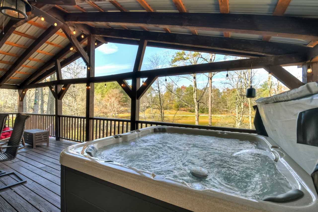 Swap stories by the firepit, soak in the bubbling hot tub, sip wine with water views, and cast a line in Hidden Lake* — within steps of the recently renovated (fall 2024) Moon Tower Cabin in the Blue Ridge Mountains of Blairsville, Georgia. This charming pet-friendly, 3-bedroom, 2-bathroom vacation rental sleeps up to 8 guests plus 2 pets and offers amenities to entertain and relax on your next family vacation or weekend with friends.