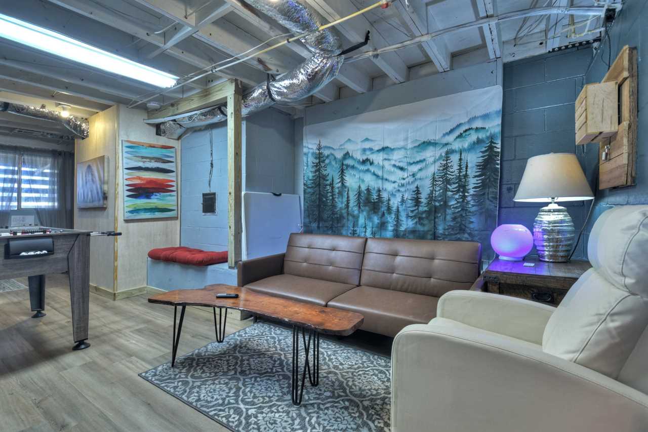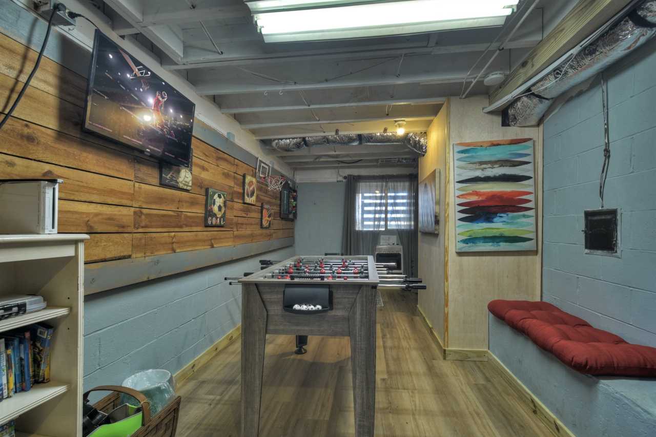 **You'll need to walk outside to access the basement game room via a staircase; you can also drive a car down to the game room level if you prefer.
