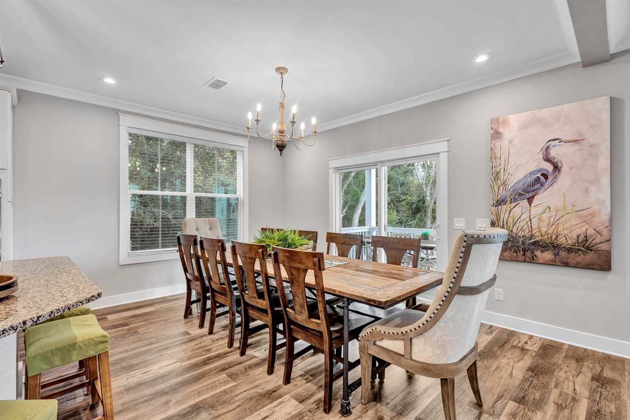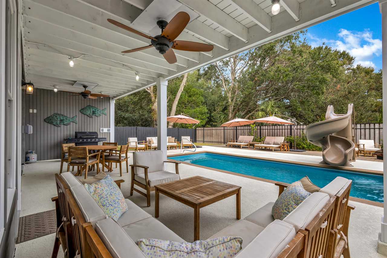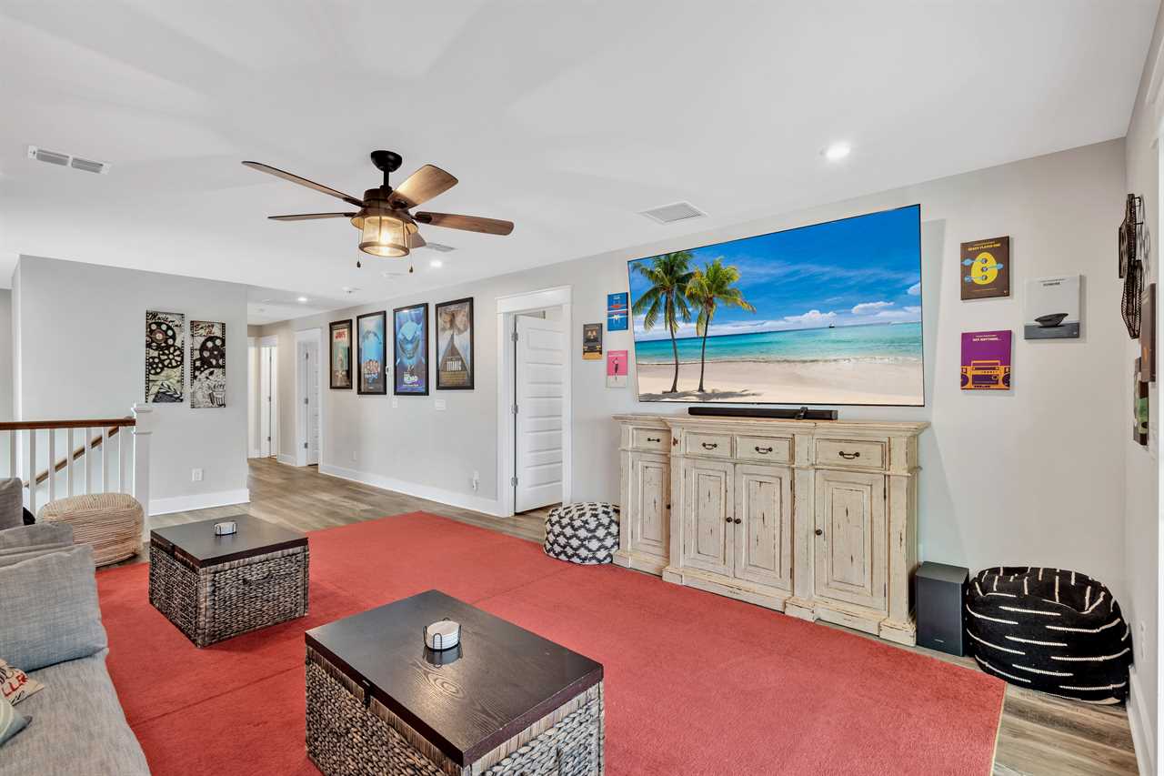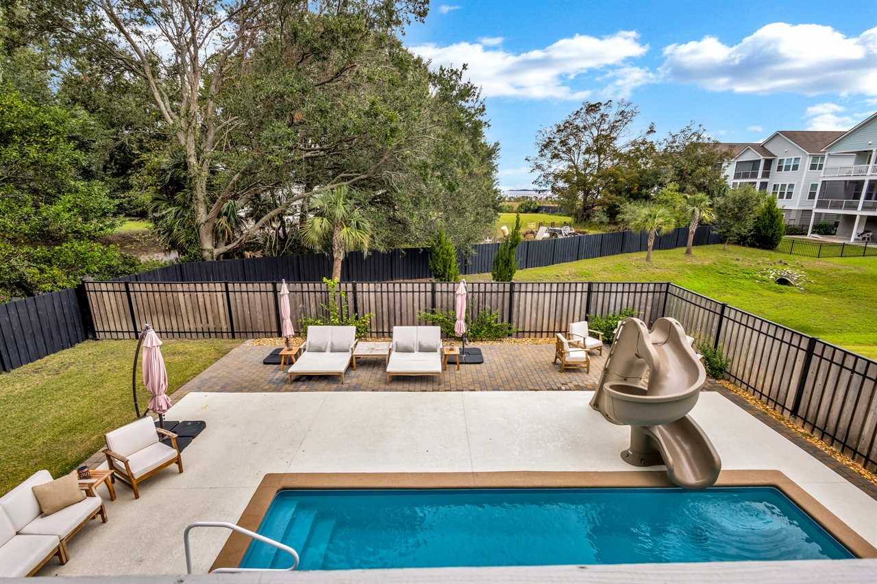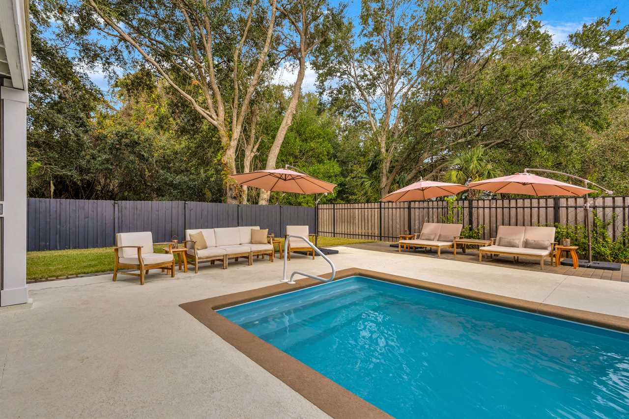 Welcome to Spinner's End located at 6 Talon Court, just a .5 mile walk from Fish Haul Beach with stunning ocean views from multiple decks. This 3,800 sq ft beauty hosts up to 18 guests and welcomes your pet too! Enjoy its unique layout designed for the comfort of a big group, including a fenced yard with a pool, waterslide, and a fire pit. The home is loaded with family-friendly amenities like cinema room, ping pong and more! Book your dream Hilton Head Island getaway with Host Home! ☆☆ HIGHLIGHTS ☆☆ ✹ 6 bedrooms for up to 18 guests: 2 King En-suites + 3 Queen Rooms + 1 Bunk Room with 2 Full over Queen Beds + 1 Queen Sleeper Sofa in the cinema room on 2d floor ✹ Pet-friendly: Bring your furry dog! 1 dog 60lb or less, or 2 dogs where their combined weight does not exceed 100lbs is allowed. There is an additional non-refundable pet fee of $300 for up to 2 dogs ✹ Outdoor Oasis: fenced yard, heated pool with a slide, fire pit, and outdoor furniture ✹ Family-friendly amenities: beach and baby gear, cinema room, ping pong, family room with a wet bar by the pool ✹ Chef s kitchen with high end appliances ✹ Spacious living areas with multiple large deck access and Atlantic ocean views ✹ High-speed Wi-Fi w/ 9 smart TVs in very room and common area ✹ Location: Hammock Breeze Community, historic Mitchelville section, Hilton Head Island. ✹ Beach Access: Just a short .5 mile walk to the peaceful Fish Haul Beach. ✹ Local Attractions: Learn American History at Fort Howell or go Clamming with the fam on Port Royal Sound - all within walking distance! Eager to Read More? Here Are A Few Kind Words From Our Previous Guests: Our family had a great stay at one of the Host Home homes. We loved the welcome basket with snacks, wine, and flowers upon our arrival. The kitchen is stocked with everything needed, the space is roomy and modern, and several beach items like towels, toys, chairs, and a wagon made going to the beach easy. We highly recommend it and hope to come back for another visit soon! Tanner (Other Location) We had amazing communication from Host Home. They were great to deal with answered our questions very promptly. Everything was organized very well organized. I would highly recommend them. Karen (Other Location) Really enjoyed our stay!! Condo is clean and well decorated. Love the beach towels available. Love how helpful and friendly Host and Home was from booking to the end. Would book here and with Host and Home again for sure! Stephanie (Other Location) ☆☆ COASTAL LIVING AT IT S FINEST ☆☆ Located near the historic Mitchellville section of Hilton Head Island, this hidden gem of a home with views of the Port Royal sound is perfect for sunset strolls on a secluded beach, just a 10-minute walk away. This spacious residence extends its charm beyond its interiors. Surrounding porches offer cozy spots for socializing, diving into a good book, or simply enjoying the Lowcountry breezes and ocean views. ☆☆ LIVING AREA ☆☆ Ground floor features a spacious Family Room off the pool deck, complemented with a full-sized refrigerator in kitchenette. It also boasts a sleeper sofa for extra guests or movie nights together, and hall bathroom with walk-in shower. On the 1st floor, discover a sanctuary with a newly appointed kitchen featuring state-of-the-art appliances and ample pantry storage, perfect for entertaining a big group. The spacious living room, complete with a smart TV, is ideal for movie nights, while the adjoined porch provides ample seating for outdoor gatherings. If it s not enough, the 2d floor offers another living room with oversized TV and upper deck access offering stunning ocean views. It is decorated as a cinema room and would be a perfect place to entertain your kids. Just imagine yourself chilling on large porch swings with a beverage of your choice after a day full of island fun. What a life! Ground Floor: ✓ Family room off pool deck with sectional sofa ✓ Full sized refrigerator in kitchenette with sink off pool deck ✓ Smart TV ✓ Garage with ping-pong table and beach gear First Floor: ✓ Indoor-Outdoor concept with large windows that flood the space with natural light ✓ Kitchen and Dining areas ✓ Comfortable furniture with Smart TV for catching a game ✓ Deck with additional dining area, comfortable outdoor furniture and ocean views Second Floor: ✓ Cinema Room with extra large TV ✓ 2 Sleeper Sofas in the cinema room ✓ Covered deck with 2 large porch swings and wicker furniture overlooking Atlantic Ocean ✓ Fully equipped laundry room for the comforts of home ✓ Hall bathroom with tub/shower combo ☆☆ OUTDOOR PRIVATE OASIS From the Family Room on the ground floor, step outside onto the private oasis overlooking the shimmering pool, adorned with comfortable seating, lounge chairs and outdoor shower perfect for relaxation and leisure. Fenced yard with plenty of outdoor furniture is an ideal place to play gather with your loved ones and let your fido roam off leash. ✓ Private heated 10 x 25 , 5 deep pool (fees apply, see below) ✓ Pool slide ✓ 2 double lounge chairs ✓ Covered deck with outdoor seating and plenty of outdoor furniture throughout ✓ Fire Pit ✓ Propane grill station ☆☆ KITCHEN AND DINING ☆☆ At the heart of the home lies a chef s kitchen, featuring top-of-the-line appliances like 6-burner gas range and double oven. Its open-plan layout transforms mealtime into a joyous occasion, offering ample seating at the island and adjacent dining tables. Perfect for shared moments and lively conversations, it creates an inviting atmosphere for gatherings and dining experiences. ✓ Brand new stainless appliances and granite countertops ✓ Everything necessary to cook and serve most meals ✓ Dripping and Keurig coffee makers ✓ Dining table seats up to 10 ✓ Kitchen island with additional 6 seats ✓ Outdoor dining area with seating for 6 ☆☆ BEDROOMS BATHROOMS ☆☆ Gorgeous Primary bedroom adorne