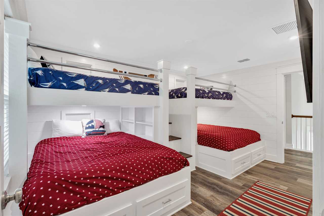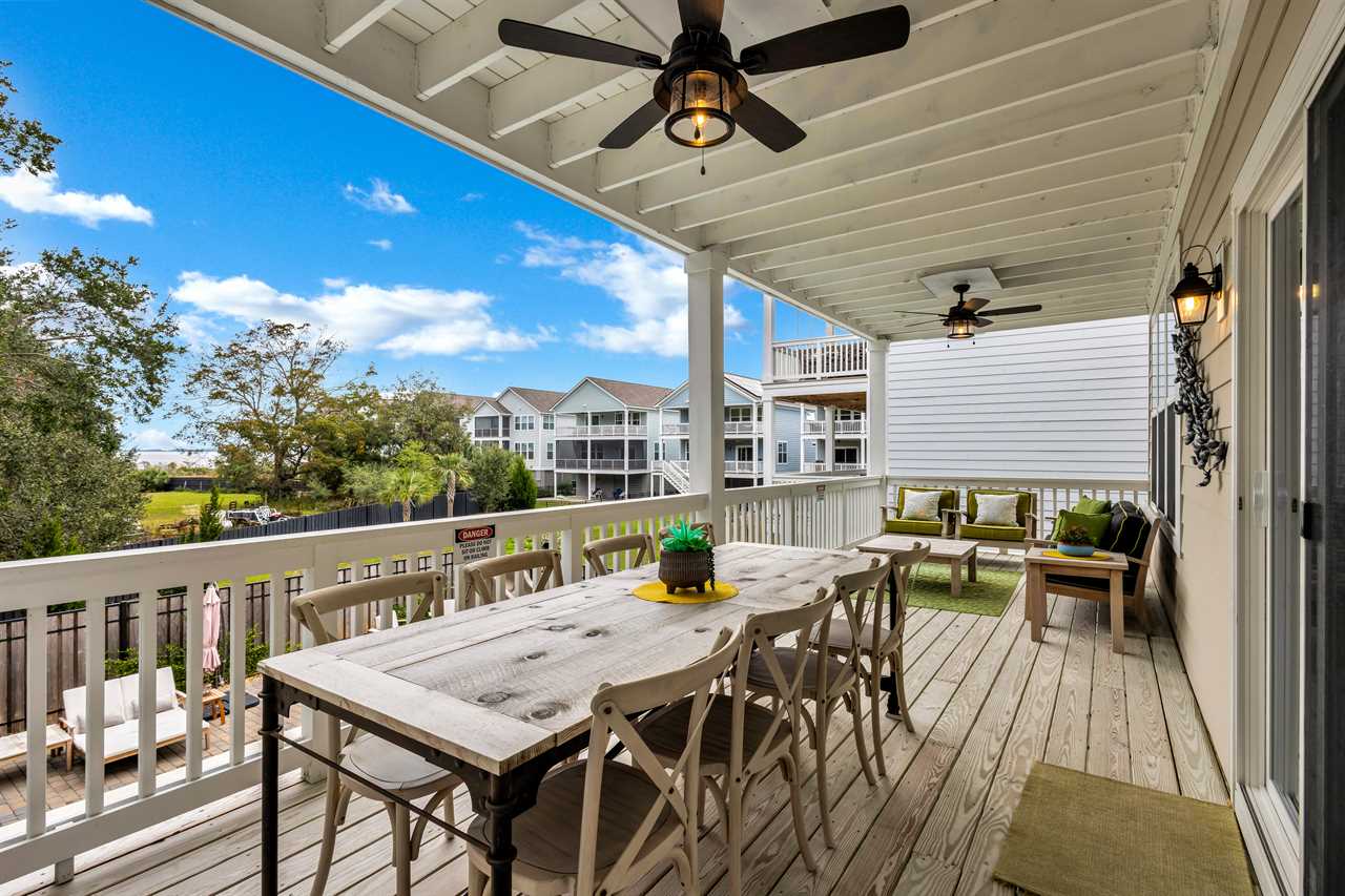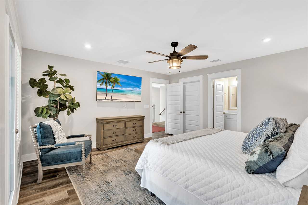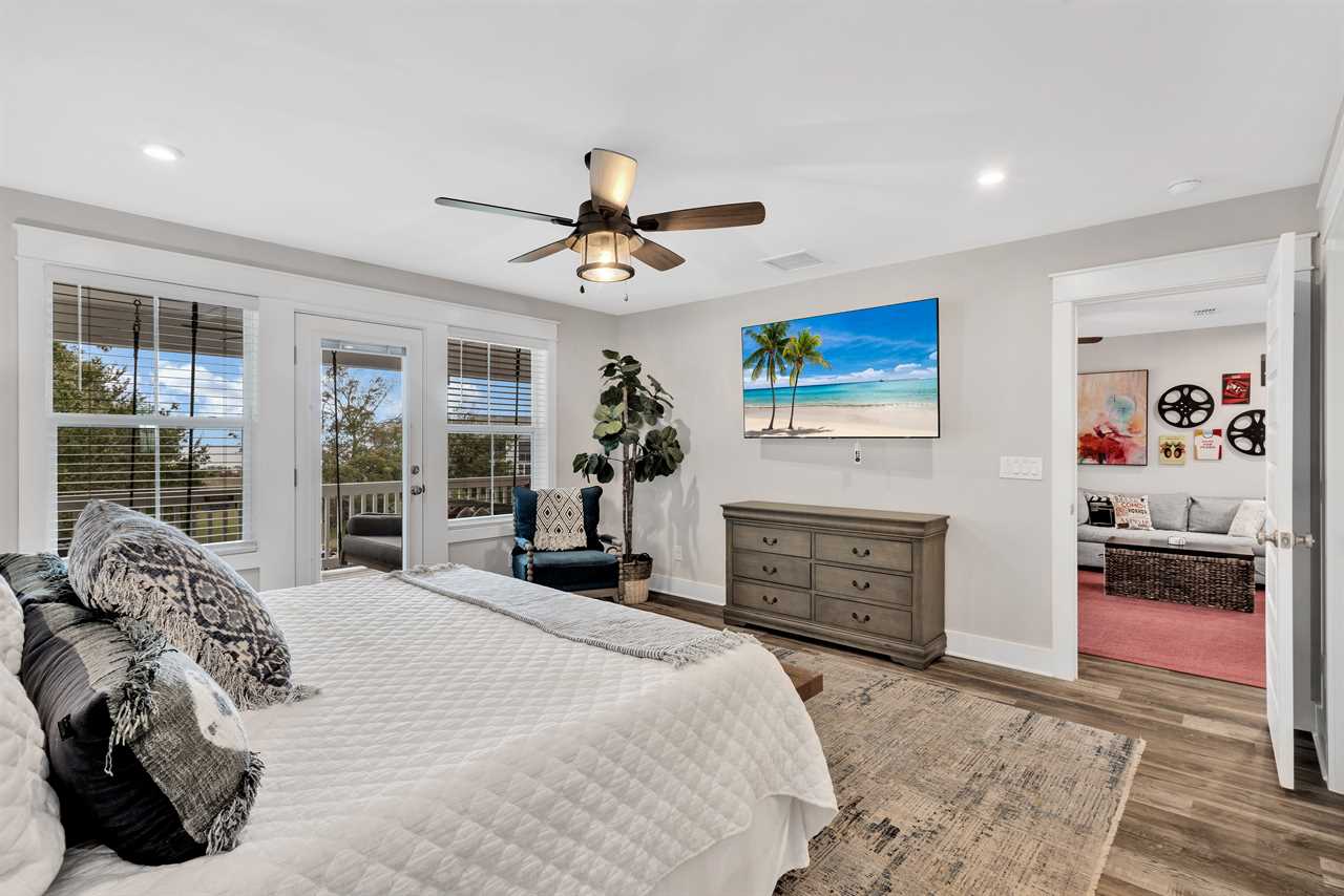 Welcome to Spinner's End located at 6 Talon Court, just a .5 mile walk from Fish Haul Beach with stunning ocean views from multiple decks. This 3,800 sq ft beauty hosts up to 18 guests and welcomes your pet too! Enjoy its unique layout designed for the comfort of a big group, including a fenced yard with a pool, waterslide, and a fire pit. The home is loaded with family-friendly amenities like cinema room, ping pong and more! Book your dream Hilton Head Island getaway with Host Home! ☆☆ HIGHLIGHTS ☆☆ ✹ 6 bedrooms for up to 18 guests: 2 King En-suites + 3 Queen Rooms + 1 Bunk Room with 2 Full over Queen Beds + 1 Queen Sleeper Sofa in the cinema room on 2d floor ✹ Pet-friendly: Bring your furry dog! 1 dog 60lb or less, or 2 dogs where their combined weight does not exceed 100lbs is allowed. There is an additional non-refundable pet fee of $300 for up to 2 dogs ✹ Outdoor Oasis: fenced yard, heated pool with a slide, fire pit, and outdoor furniture ✹ Family-friendly amenities: beach and baby gear, cinema room, ping pong, family room with a wet bar by the pool ✹ Chef s kitchen with high end appliances ✹ Spacious living areas with multiple large deck access and Atlantic ocean views ✹ High-speed Wi-Fi w/ 9 smart TVs in very room and common area ✹ Location: Hammock Breeze Community, historic Mitchelville section, Hilton Head Island. ✹ Beach Access: Just a short .5 mile walk to the peaceful Fish Haul Beach. ✹ Local Attractions: Learn American History at Fort Howell or go Clamming with the fam on Port Royal Sound - all within walking distance! Eager to Read More? Here Are A Few Kind Words From Our Previous Guests: Our family had a great stay at one of the Host Home homes. We loved the welcome basket with snacks, wine, and flowers upon our arrival. The kitchen is stocked with everything needed, the space is roomy and modern, and several beach items like towels, toys, chairs, and a wagon made going to the beach easy. We highly recommend it and hope to come back for another visit soon! Tanner (Other Location) We had amazing communication from Host Home. They were great to deal with answered our questions very promptly. Everything was organized very well organized. I would highly recommend them. Karen (Other Location) Really enjoyed our stay!! Condo is clean and well decorated. Love the beach towels available. Love how helpful and friendly Host and Home was from booking to the end. Would book here and with Host and Home again for sure! Stephanie (Other Location) ☆☆ COASTAL LIVING AT IT S FINEST ☆☆ Located near the historic Mitchellville section of Hilton Head Island, this hidden gem of a home with views of the Port Royal sound is perfect for sunset strolls on a secluded beach, just a 10-minute walk away. This spacious residence extends its charm beyond its interiors. Surrounding porches offer cozy spots for socializing, diving into a good book, or simply enjoying the Lowcountry breezes and ocean views. ☆☆ LIVING AREA ☆☆ Ground floor features a spacious Family Room off the pool deck, complemented with a full-sized refrigerator in kitchenette. It also boasts a sleeper sofa for extra guests or movie nights together, and hall bathroom with walk-in shower. On the 1st floor, discover a sanctuary with a newly appointed kitchen featuring state-of-the-art appliances and ample pantry storage, perfect for entertaining a big group. The spacious living room, complete with a smart TV, is ideal for movie nights, while the adjoined porch provides ample seating for outdoor gatherings. If it s not enough, the 2d floor offers another living room with oversized TV and upper deck access offering stunning ocean views. It is decorated as a cinema room and would be a perfect place to entertain your kids. Just imagine yourself chilling on large porch swings with a beverage of your choice after a day full of island fun. What a life! Ground Floor: ✓ Family room off pool deck with sectional sofa ✓ Full sized refrigerator in kitchenette with sink off pool deck ✓ Smart TV ✓ Garage with ping-pong table and beach gear First Floor: ✓ Indoor-Outdoor concept with large windows that flood the space with natural light ✓ Kitchen and Dining areas ✓ Comfortable furniture with Smart TV for catching a game ✓ Deck with additional dining area, comfortable outdoor furniture and ocean views Second Floor: ✓ Cinema Room with extra large TV ✓ 2 Sleeper Sofas in the cinema room ✓ Covered deck with 2 large porch swings and wicker furniture overlooking Atlantic Ocean ✓ Fully equipped laundry room for the comforts of home ✓ Hall bathroom with tub/shower combo ☆☆ OUTDOOR PRIVATE OASIS From the Family Room on the ground floor, step outside onto the private oasis overlooking the shimmering pool, adorned with comfortable seating, lounge chairs and outdoor shower perfect for relaxation and leisure. Fenced yard with plenty of outdoor furniture is an ideal place to play gather with your loved ones and let your fido roam off leash. ✓ Private heated 10 x 25 , 5 deep pool (fees apply, see below) ✓ Pool slide ✓ 2 double lounge chairs ✓ Covered deck with outdoor seating and plenty of outdoor furniture throughout ✓ Fire Pit ✓ Propane grill station ☆☆ KITCHEN AND DINING ☆☆ At the heart of the home lies a chef s kitchen, featuring top-of-the-line appliances like 6-burner gas range and double oven. Its open-plan layout transforms mealtime into a joyous occasion, offering ample seating at the island and adjacent dining tables. Perfect for shared moments and lively conversations, it creates an inviting atmosphere for gatherings and dining experiences. ✓ Brand new stainless appliances and granite countertops ✓ Everything necessary to cook and serve most meals ✓ Dripping and Keurig coffee makers ✓ Dining table seats up to 10 ✓ Kitchen island with additional 6 seats ✓ Outdoor dining area with seating for 6 ☆☆ BEDROOMS BATHROOMS ☆☆ Gorgeous Primary bedroom adorne