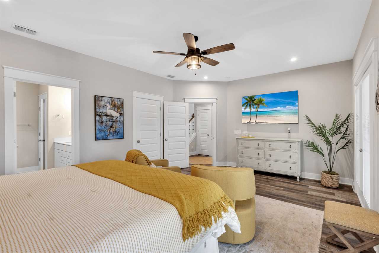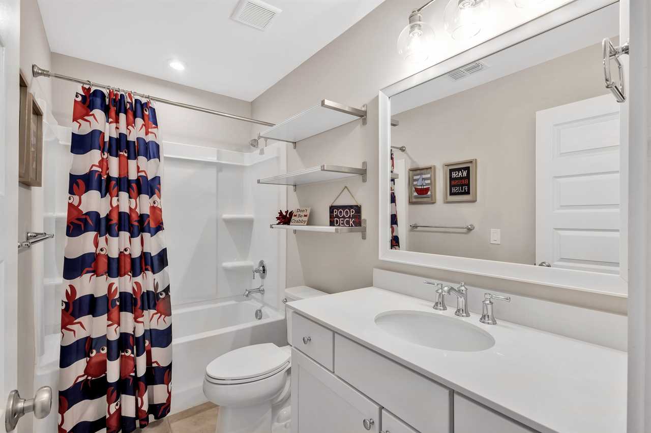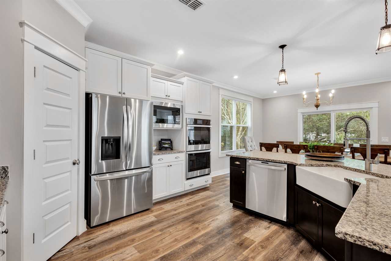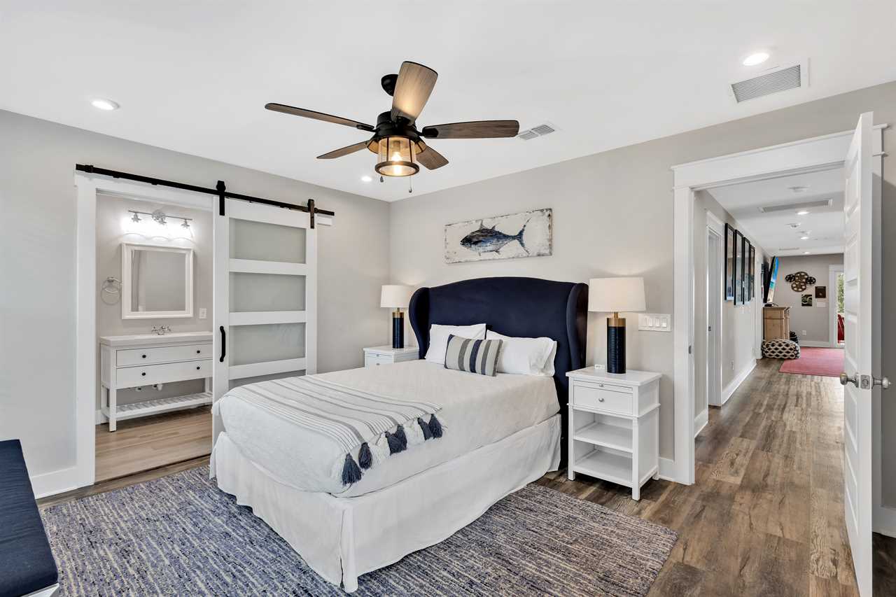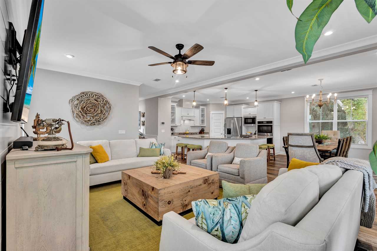 Welcome to Spinner's End located at 6 Talon Court, just a .5 mile walk from Fish Haul Beach with stunning ocean views from multiple decks. This 3,800 sq ft beauty hosts up to 18 guests and welcomes your pet too! Enjoy its unique layout designed for the comfort of a big group, including a fenced yard with a pool, waterslide, and a fire pit. The home is loaded with family-friendly amenities like cinema room, ping pong and more! Book your dream Hilton Head Island getaway with Host Home! ☆☆ HIGHLIGHTS ☆☆ ✹ 6 bedrooms for up to 18 guests: 2 King En-suites + 3 Queen Rooms + 1 Bunk Room with 2 Full over Queen Beds + 1 Queen Sleeper Sofa in the cinema room on 2d floor ✹ Pet-friendly: Bring your furry dog! 1 dog 60lb or less, or 2 dogs where their combined weight does not exceed 100lbs is allowed. There is an additional non-refundable pet fee of $300 for up to 2 dogs ✹ Outdoor Oasis: fenced yard, heated pool with a slide, fire pit, and outdoor furniture ✹ Family-friendly amenities: beach and baby gear, cinema room, ping pong, family room with a wet bar by the pool ✹ Chef s kitchen with high end appliances ✹ Spacious living areas with multiple large deck access and Atlantic ocean views ✹ High-speed Wi-Fi w/ 9 smart TVs in very room and common area ✹ Location: Hammock Breeze Community, historic Mitchelville section, Hilton Head Island. ✹ Beach Access: Just a short .5 mile walk to the peaceful Fish Haul Beach. ✹ Local Attractions: Learn American History at Fort Howell or go Clamming with the fam on Port Royal Sound - all within walking distance! Eager to Read More? Here Are A Few Kind Words From Our Previous Guests: Our family had a great stay at one of the Host Home homes. We loved the welcome basket with snacks, wine, and flowers upon our arrival. The kitchen is stocked with everything needed, the space is roomy and modern, and several beach items like towels, toys, chairs, and a wagon made going to the beach easy. We highly recommend it and hope to come back for another visit soon! Tanner (Other Location) We had amazing communication from Host Home. They were great to deal with answered our questions very promptly. Everything was organized very well organized. I would highly recommend them. Karen (Other Location) Really enjoyed our stay!! Condo is clean and well decorated. Love the beach towels available. Love how helpful and friendly Host and Home was from booking to the end. Would book here and with Host and Home again for sure! Stephanie (Other Location) ☆☆ COASTAL LIVING AT IT S FINEST ☆☆ Located near the historic Mitchellville section of Hilton Head Island, this hidden gem of a home with views of the Port Royal sound is perfect for sunset strolls on a secluded beach, just a 10-minute walk away. This spacious residence extends its charm beyond its interiors. Surrounding porches offer cozy spots for socializing, diving into a good book, or simply enjoying the Lowcountry breezes and ocean views. ☆☆ LIVING AREA ☆☆ Ground floor features a spacious Family Room off the pool deck, complemented with a full-sized refrigerator in kitchenette. It also boasts a sleeper sofa for extra guests or movie nights together, and hall bathroom with walk-in shower. On the 1st floor, discover a sanctuary with a newly appointed kitchen featuring state-of-the-art appliances and ample pantry storage, perfect for entertaining a big group. The spacious living room, complete with a smart TV, is ideal for movie nights, while the adjoined porch provides ample seating for outdoor gatherings. If it s not enough, the 2d floor offers another living room with oversized TV and upper deck access offering stunning ocean views. It is decorated as a cinema room and would be a perfect place to entertain your kids. Just imagine yourself chilling on large porch swings with a beverage of your choice after a day full of island fun. What a life! Ground Floor: ✓ Family room off pool deck with sectional sofa ✓ Full sized refrigerator in kitchenette with sink off pool deck ✓ Smart TV ✓ Garage with ping-pong table and beach gear First Floor: ✓ Indoor-Outdoor concept with large windows that flood the space with natural light ✓ Kitchen and Dining areas ✓ Comfortable furniture with Smart TV for catching a game ✓ Deck with additional dining area, comfortable outdoor furniture and ocean views Second Floor: ✓ Cinema Room with extra large TV ✓ 2 Sleeper Sofas in the cinema room ✓ Covered deck with 2 large porch swings and wicker furniture overlooking Atlantic Ocean ✓ Fully equipped laundry room for the comforts of home ✓ Hall bathroom with tub/shower combo ☆☆ OUTDOOR PRIVATE OASIS From the Family Room on the ground floor, step outside onto the private oasis overlooking the shimmering pool, adorned with comfortable seating, lounge chairs and outdoor shower perfect for relaxation and leisure. Fenced yard with plenty of outdoor furniture is an ideal place to play gather with your loved ones and let your fido roam off leash. ✓ Private heated 10 x 25 , 5 deep pool (fees apply, see below) ✓ Pool slide ✓ 2 double lounge chairs ✓ Covered deck with outdoor seating and plenty of outdoor furniture throughout ✓ Fire Pit ✓ Propane grill station ☆☆ KITCHEN AND DINING ☆☆ At the heart of the home lies a chef s kitchen, featuring top-of-the-line appliances like 6-burner gas range and double oven. Its open-plan layout transforms mealtime into a joyous occasion, offering ample seating at the island and adjacent dining tables. Perfect for shared moments and lively conversations, it creates an inviting atmosphere for gatherings and dining experiences. ✓ Brand new stainless appliances and granite countertops ✓ Everything necessary to cook and serve most meals ✓ Dripping and Keurig coffee makers ✓ Dining table seats up to 10 ✓ Kitchen island with additional 6 seats ✓ Outdoor dining area with seating for 6 ☆☆ BEDROOMS BATHROOMS ☆☆ Gorgeous Primary bedroom adorne