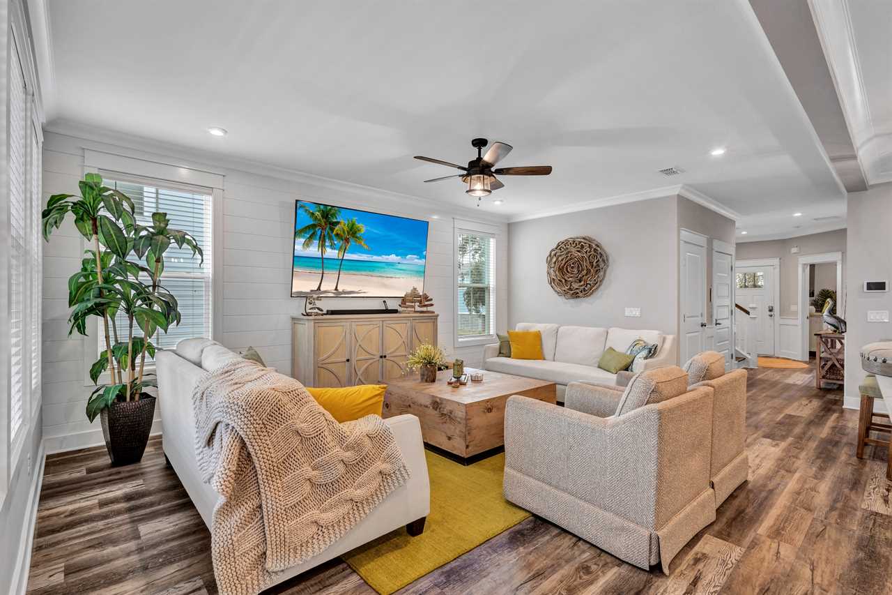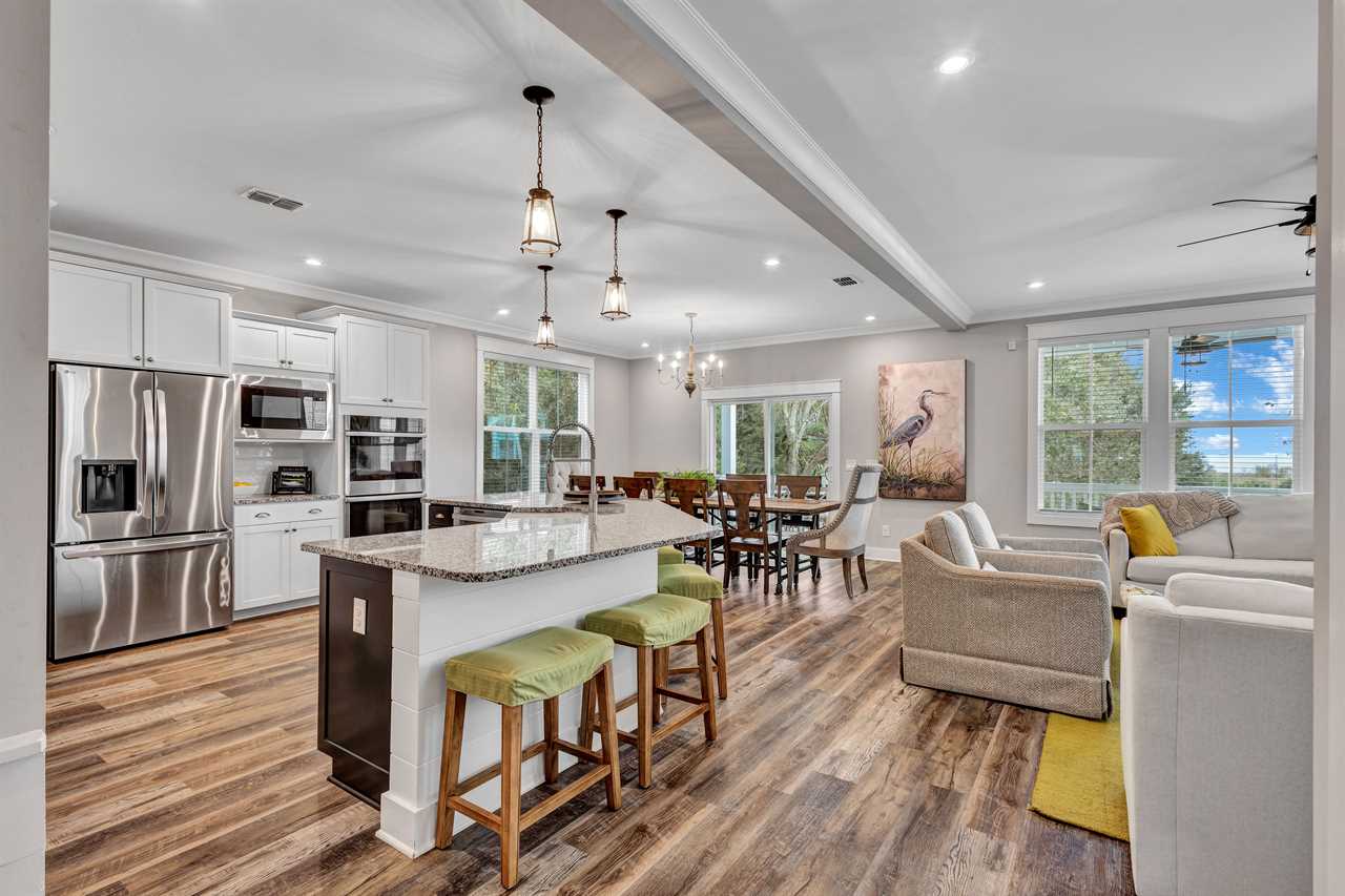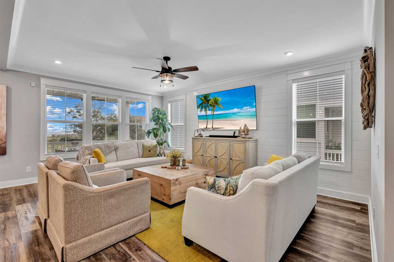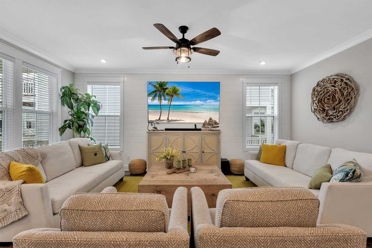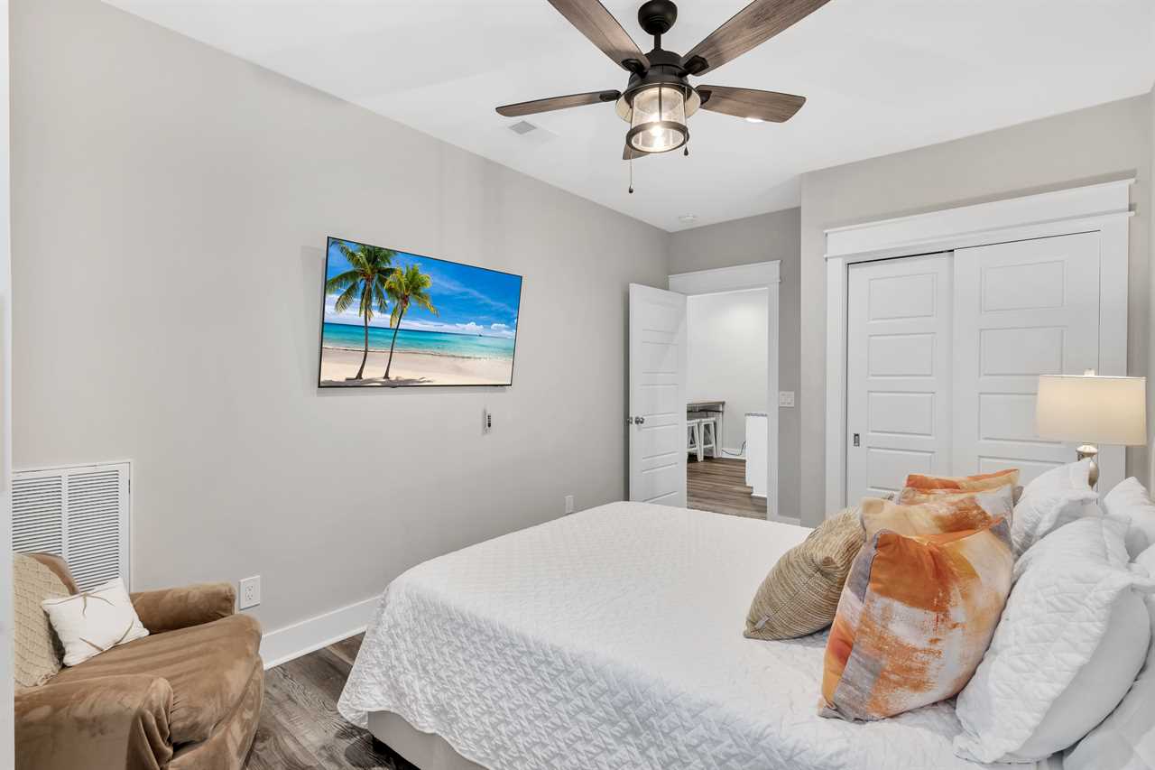 Welcome to Spinner's End located at 6 Talon Court, just a .5 mile walk from Fish Haul Beach with stunning ocean views from multiple decks. This 3,800 sq ft beauty hosts up to 18 guests and welcomes your pet too! Enjoy its unique layout designed for the comfort of a big group, including a fenced yard with a pool, waterslide, and a fire pit. The home is loaded with family-friendly amenities like cinema room, ping pong and more! Book your dream Hilton Head Island getaway with Host Home! ☆☆ HIGHLIGHTS ☆☆ ✹ 6 bedrooms for up to 18 guests: 2 King En-suites + 3 Queen Rooms + 1 Bunk Room with 2 Full over Queen Beds + 1 Queen Sleeper Sofa in the cinema room on 2d floor ✹ Pet-friendly: Bring your furry dog! 1 dog 60lb or less, or 2 dogs where their combined weight does not exceed 100lbs is allowed. There is an additional non-refundable pet fee of $300 for up to 2 dogs ✹ Outdoor Oasis: fenced yard, heated pool with a slide, fire pit, and outdoor furniture ✹ Family-friendly amenities: beach and baby gear, cinema room, ping pong, family room with a wet bar by the pool ✹ Chef s kitchen with high end appliances ✹ Spacious living areas with multiple large deck access and Atlantic ocean views ✹ High-speed Wi-Fi w/ 9 smart TVs in very room and common area ✹ Location: Hammock Breeze Community, historic Mitchelville section, Hilton Head Island. ✹ Beach Access: Just a short .5 mile walk to the peaceful Fish Haul Beach. ✹ Local Attractions: Learn American History at Fort Howell or go Clamming with the fam on Port Royal Sound - all within walking distance! Eager to Read More? Here Are A Few Kind Words From Our Previous Guests: Our family had a great stay at one of the Host Home homes. We loved the welcome basket with snacks, wine, and flowers upon our arrival. The kitchen is stocked with everything needed, the space is roomy and modern, and several beach items like towels, toys, chairs, and a wagon made going to the beach easy. We highly recommend it and hope to come back for another visit soon! Tanner (Other Location) We had amazing communication from Host Home. They were great to deal with answered our questions very promptly. Everything was organized very well organized. I would highly recommend them. Karen (Other Location) Really enjoyed our stay!! Condo is clean and well decorated. Love the beach towels available. Love how helpful and friendly Host and Home was from booking to the end. Would book here and with Host and Home again for sure! Stephanie (Other Location) ☆☆ COASTAL LIVING AT IT S FINEST ☆☆ Located near the historic Mitchellville section of Hilton Head Island, this hidden gem of a home with views of the Port Royal sound is perfect for sunset strolls on a secluded beach, just a 10-minute walk away. This spacious residence extends its charm beyond its interiors. Surrounding porches offer cozy spots for socializing, diving into a good book, or simply enjoying the Lowcountry breezes and ocean views. ☆☆ LIVING AREA ☆☆ Ground floor features a spacious Family Room off the pool deck, complemented with a full-sized refrigerator in kitchenette. It also boasts a sleeper sofa for extra guests or movie nights together, and hall bathroom with walk-in shower. On the 1st floor, discover a sanctuary with a newly appointed kitchen featuring state-of-the-art appliances and ample pantry storage, perfect for entertaining a big group. The spacious living room, complete with a smart TV, is ideal for movie nights, while the adjoined porch provides ample seating for outdoor gatherings. If it s not enough, the 2d floor offers another living room with oversized TV and upper deck access offering stunning ocean views. It is decorated as a cinema room and would be a perfect place to entertain your kids. Just imagine yourself chilling on large porch swings with a beverage of your choice after a day full of island fun. What a life! Ground Floor: ✓ Family room off pool deck with sectional sofa ✓ Full sized refrigerator in kitchenette with sink off pool deck ✓ Smart TV ✓ Garage with ping-pong table and beach gear First Floor: ✓ Indoor-Outdoor concept with large windows that flood the space with natural light ✓ Kitchen and Dining areas ✓ Comfortable furniture with Smart TV for catching a game ✓ Deck with additional dining area, comfortable outdoor furniture and ocean views Second Floor: ✓ Cinema Room with extra large TV ✓ 2 Sleeper Sofas in the cinema room ✓ Covered deck with 2 large porch swings and wicker furniture overlooking Atlantic Ocean ✓ Fully equipped laundry room for the comforts of home ✓ Hall bathroom with tub/shower combo ☆☆ OUTDOOR PRIVATE OASIS From the Family Room on the ground floor, step outside onto the private oasis overlooking the shimmering pool, adorned with comfortable seating, lounge chairs and outdoor shower perfect for relaxation and leisure. Fenced yard with plenty of outdoor furniture is an ideal place to play gather with your loved ones and let your fido roam off leash. ✓ Private heated 10 x 25 , 5 deep pool (fees apply, see below) ✓ Pool slide ✓ 2 double lounge chairs ✓ Covered deck with outdoor seating and plenty of outdoor furniture throughout ✓ Fire Pit ✓ Propane grill station ☆☆ KITCHEN AND DINING ☆☆ At the heart of the home lies a chef s kitchen, featuring top-of-the-line appliances like 6-burner gas range and double oven. Its open-plan layout transforms mealtime into a joyous occasion, offering ample seating at the island and adjacent dining tables. Perfect for shared moments and lively conversations, it creates an inviting atmosphere for gatherings and dining experiences. ✓ Brand new stainless appliances and granite countertops ✓ Everything necessary to cook and serve most meals ✓ Dripping and Keurig coffee makers ✓ Dining table seats up to 10 ✓ Kitchen island with additional 6 seats ✓ Outdoor dining area with seating for 6 ☆☆ BEDROOMS BATHROOMS ☆☆ Gorgeous Primary bedroom adorne