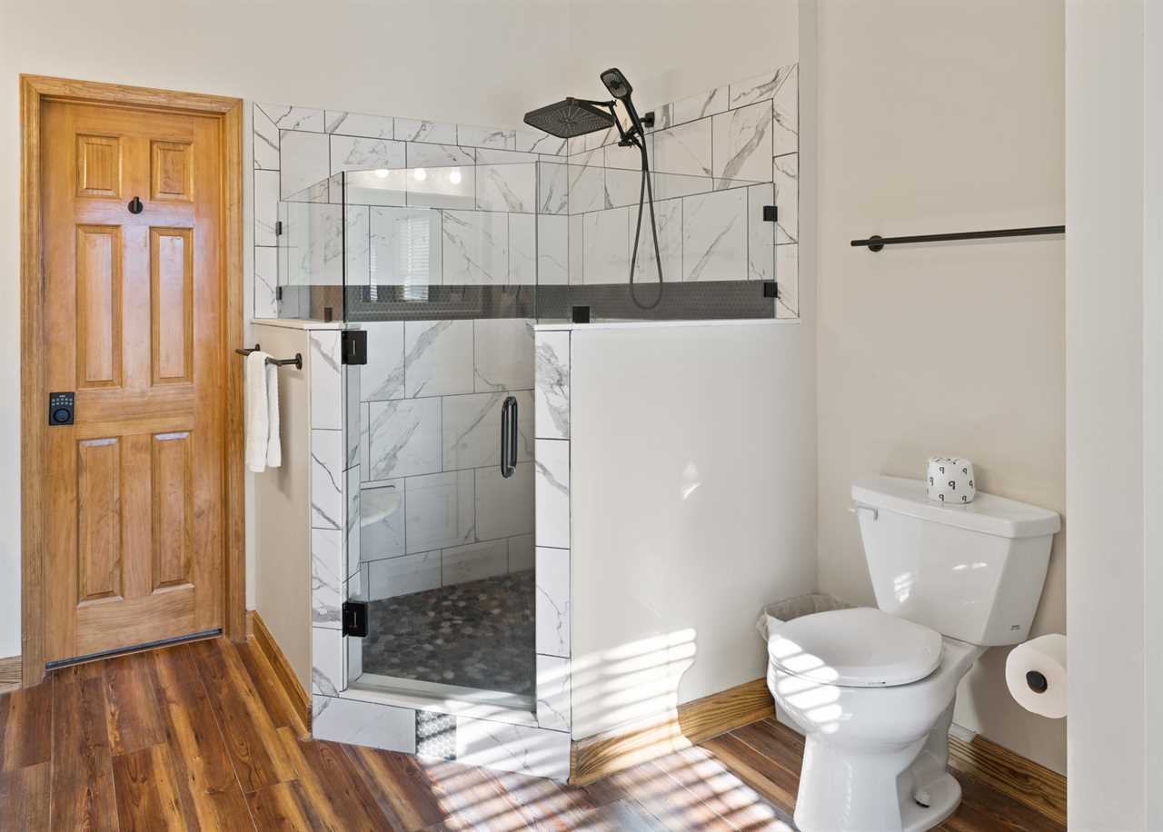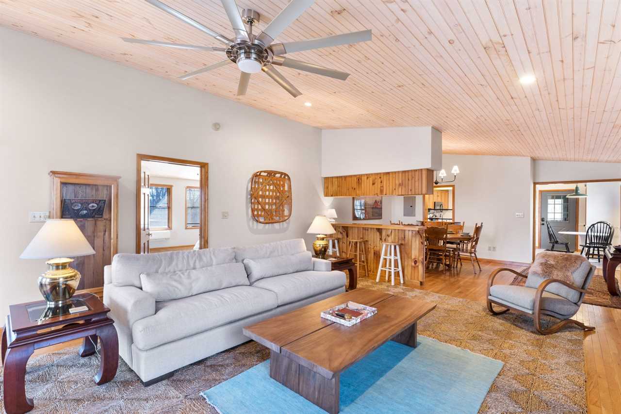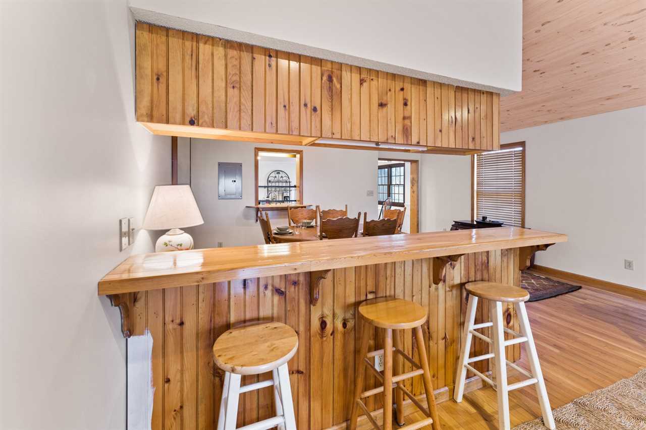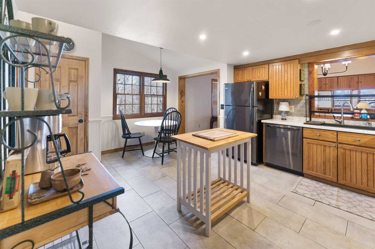 The Wydown House offers one-level living with mountain views and an abundance of natural sunlight. Enter the cabin through the mud room, allows for a convenient place to hang coats, and keep shoes and adventure gear. The living room features comfortable furniture to sit back and enjoy the stacked stone gas fireplace and big screen TV. The well equipped kitchen includes updated appliances, a coffee bar and a nook with a kitchen table. The pass through window from the kitchen makes it easy to bring the dining room and kitchen together.