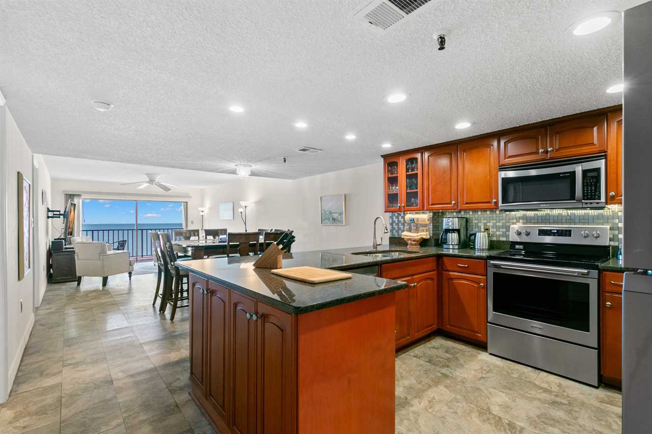 Las Brisas #504 is a beautifully appointed three-bedroom, two-bathroom condo, considerably updated and modernized in 2025, located on the fifth floor with stunning direct Gulf-front views from a private balcony. This spacious retreat comfortably sleeps up to 12 guests and is perfect for families or groups looking to enjoy the best of Madeira Beach. Sleeping Arrangements: Master Bedroom – King-size bed, large HD TV with cable/streaming, CD player, vanity table, dresser, two dimmable nightstands, a recliner and access to the balcony. Second Bedroom – Two full-size beds, dresser, 32” TV with cable, dimmable reading and night light, and a nightstand. Third Bedroom – Twin-size bunk bed with trundle (three twin mattresses), dresser, desk with chair, dimmable night light, and TV/game monitor. Additional Sleeping Options – Two split-queen (twins) beds that could be used separately or securely joined into a full queen bed, stored in the closet, plus a brand-new living room sofa with chaise lounge that comfortably sleeps one person. Please contact the office for linen and help to set up the two beds. Additional pillows, blankets and comforters are in the closets. Amenities & Features: ✅ Private balcony with breathtaking Gulf views, featuring four chairs, a table, and two full-size tanning loungers. ✅ In-unit laundry room with washer, dryer, iron, ironing board (one mounted on the door and a small portable), and cleaning essentials. ✅ Free high-speed Wi-Fi and entertainment options, including a 65" HD TV in the living room with cable and Internet streaming. ✅ Fully equipped kitchen with a fridge, freezer, ice maker, dishwasher, oven, countertop toaster oven, two coffee makers (filtered & K-cup), electric kettle, blender, waffle maker, slow cooker, fondue pot, large party bowls and plenty of cookware, dishes, and utensils. Living & Dining Areas: Cozy living room with a 5-seater sofa with chaise lounge, two large chairs, convertible lift-top coffee table, fireplace, and entertainment center. Dining table with 8 chairs, plus a kids' 4-seater dining/play table. Kitchen counter with three bar stools for extra seating. Resort-Style Amenities at Las Brisas: 🏖 Gulf-front heated pool overlooking the beach. 🏖 Private beach access from the ground level. 🏖 Tiki huts, picnic area, and BBQ grills for guest use. 🏖 Two assigned covered parking spaces with a covered walkway leading to the elevator. Convenient Location – Walking Distance to: 🚶‍♂️ 7 Restaurants 🚶‍♂️ 2 Supermarkets 🚶‍♂️ CVS Pharmacy, McDonald's, 7-Eleven 🚶‍♂️ Boat Rentals & Smuggler's Cove Mini Golf 🚶‍♂️ Beach Park, Library & Madeira Way Shopping Short Drive to: 🚗 John's Pass Village & Boardwalk (5 min) 🚗 Treasure Island (5 min) 🚗 Walmart Supercenter (5 min) 🚗 Multiple Gas Stations & Additional Dining Las Brisas #504 offers the perfect mix of relaxation, convenience, and coastal luxury. Book your stay today and experience unforgettable Gulf-front living! 🌊☀️