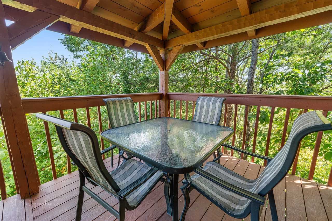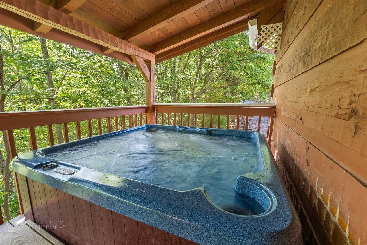 Escape to your own private retreat in the heart of the Smoky Mountains! This cozy cabin boasts an expansive outdoor space, perfect for relaxing and reconnecting with nature. Enjoy barbequing on the charcoal grill, then gather around the dining table amidst the serene surroundings. Unwind in the soothing hot tubs under the stars, or lounge in outdoor seating amidst the gentle rustle of trees. The private deck and patio areas are designed for relaxation, with comfortable seating and a natural ambiance that will transport you to tranquility. Whether celebrating a special occasion or needing a getaway, this cabin's outdoor oasis is the perfect place to unwind and rejuvenate.