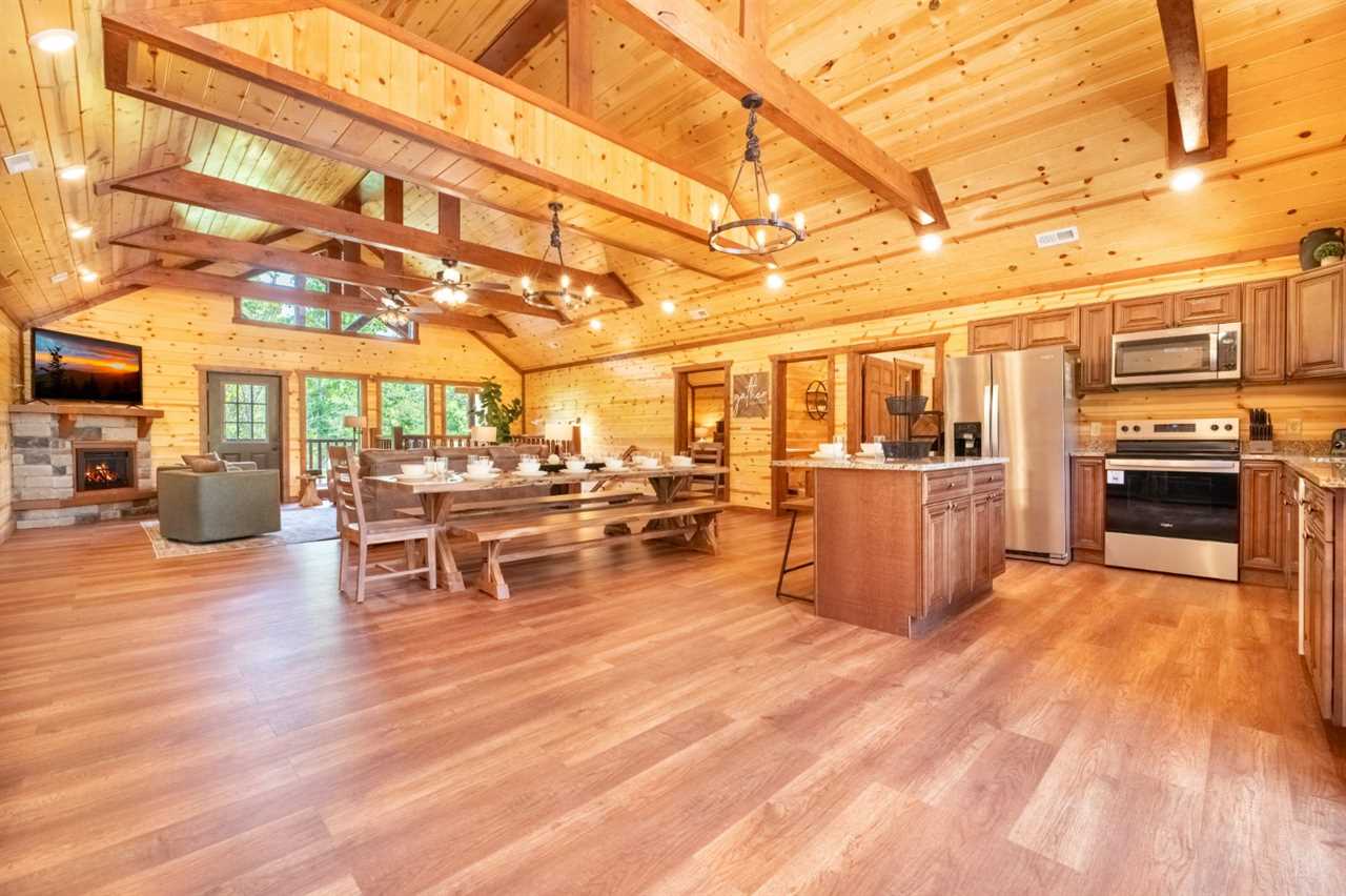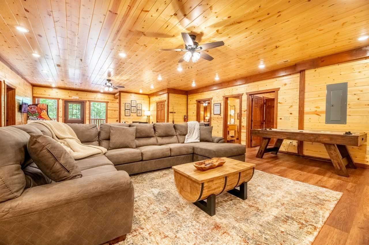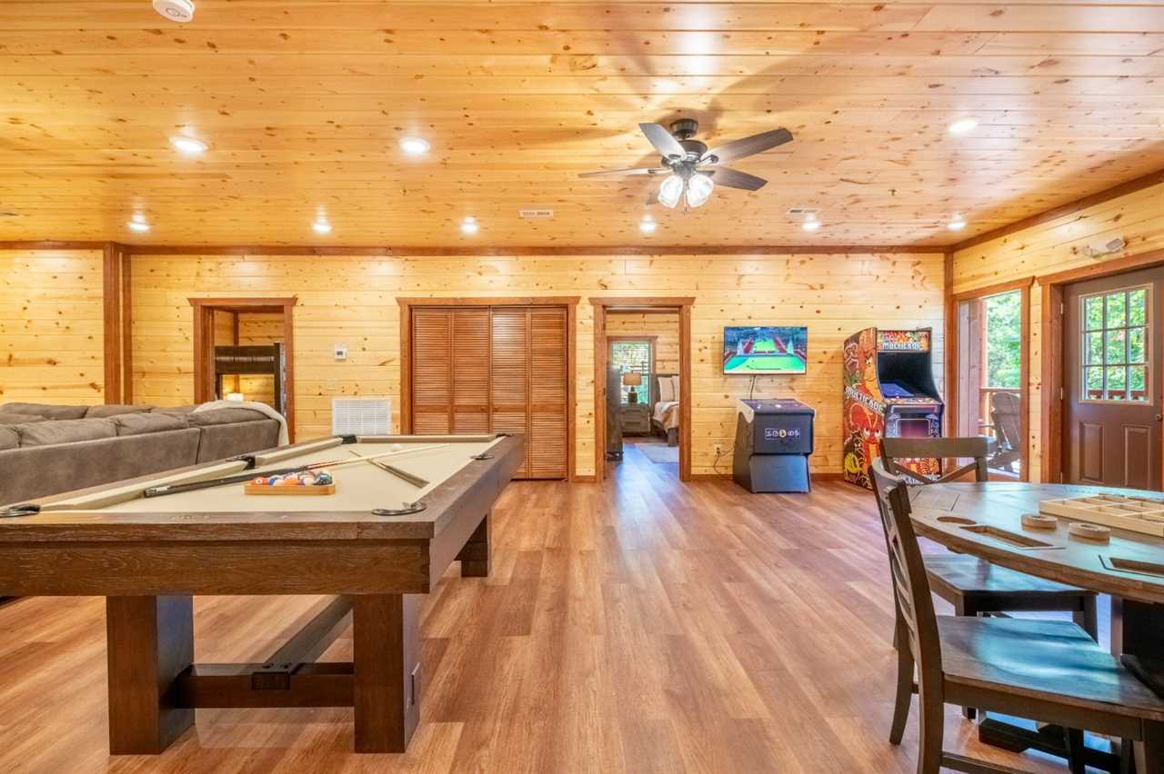 Tucked away in the scenic wooded landscapes of Pigeon Forge, Tennessee, this 8-bedroom cabin offers the perfect blend of relaxation and entertainment for large gatherings. With 4,800 square feet of space, it comfortably accommodates up to 24 guests, making it ideal for family reunions, group vacations, or special celebrations. Just 15 minutes from Parkway attractions in Pigeon Forge and Sevierville, and with easy access to Gatlinburg and the Great Smoky Mountains National Park, adventure is always within reach!
