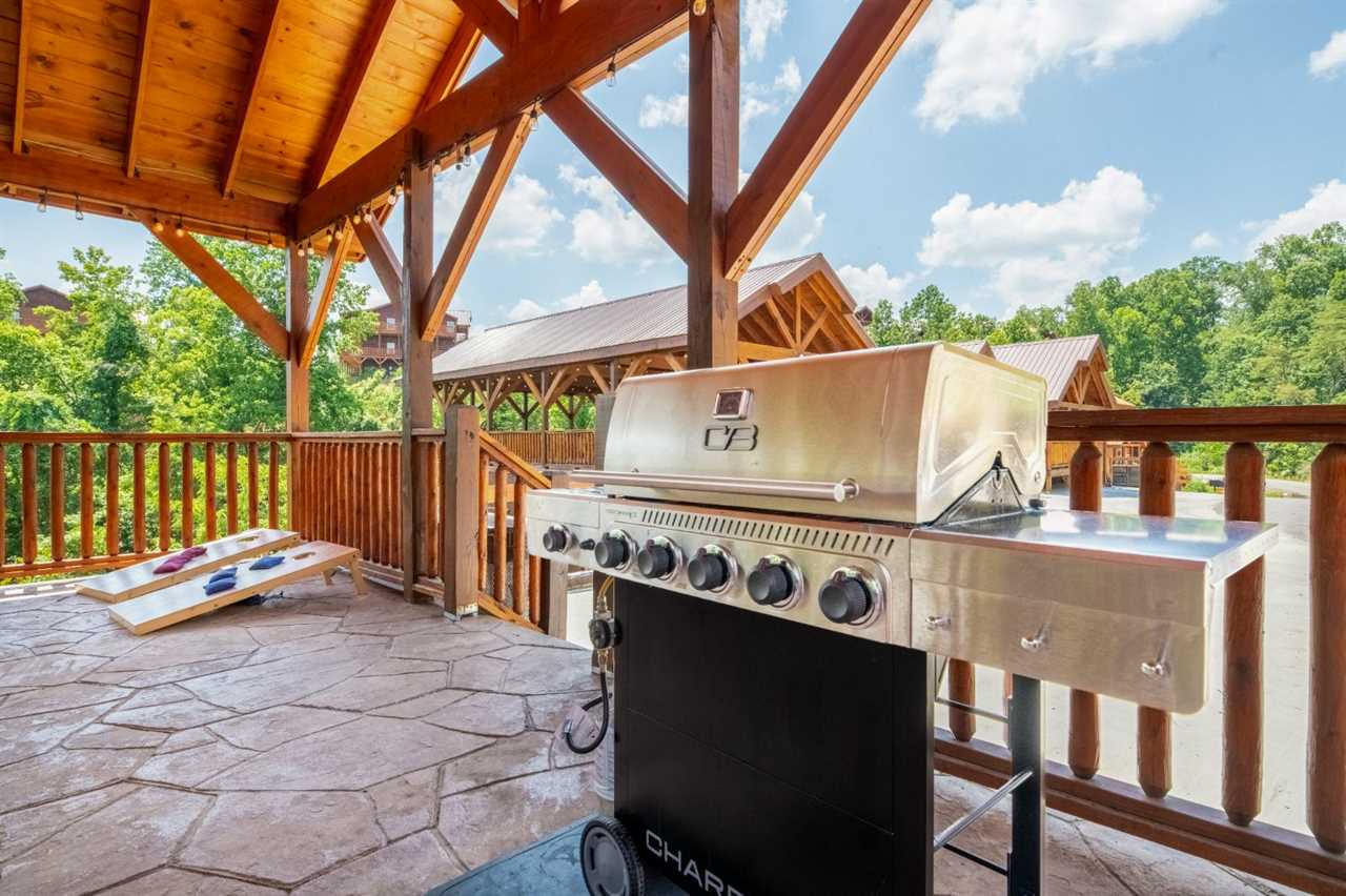 At the heart of this Pigeon Forge cabin rental is the private indoor pool — where guests can splash, swim, and unwind year-round. After a fun-filled day exploring Dollywood, The Island, or local hiking trails, cozy up by the electric, heated fireplace with a warm drink in hand. A fully equipped kitchen makes mealtimes a breeze, whether you're cooking for a crowd or enjoying a midnight snack. And you can take meals to the great outdoors with burgers sizzling on the gas grill and cookies for dessert around the fire table.