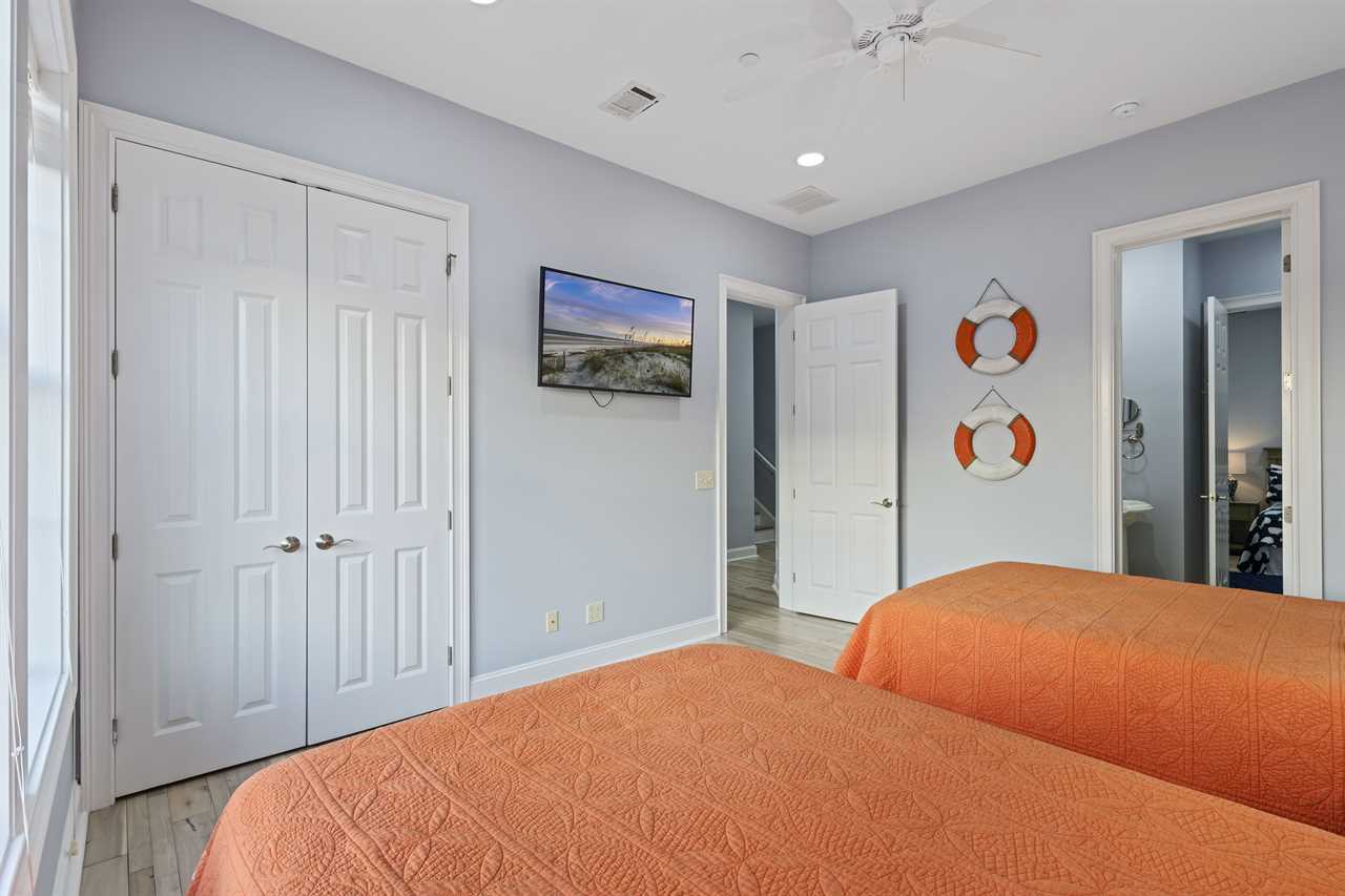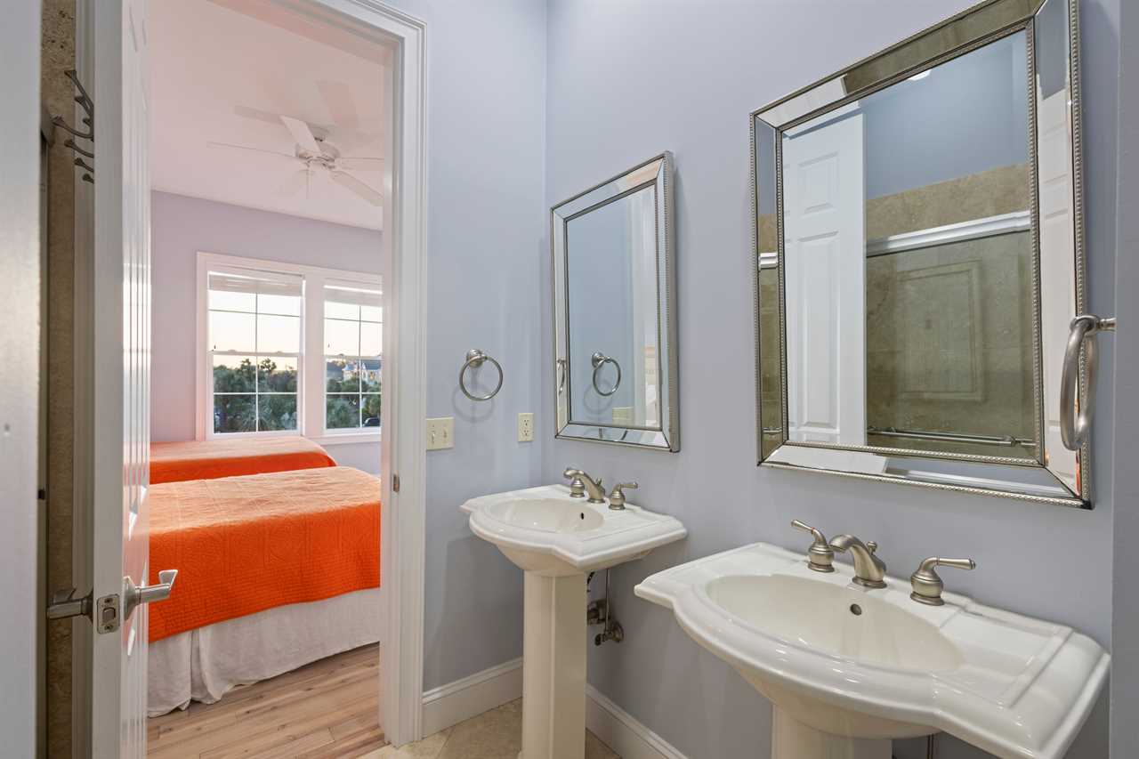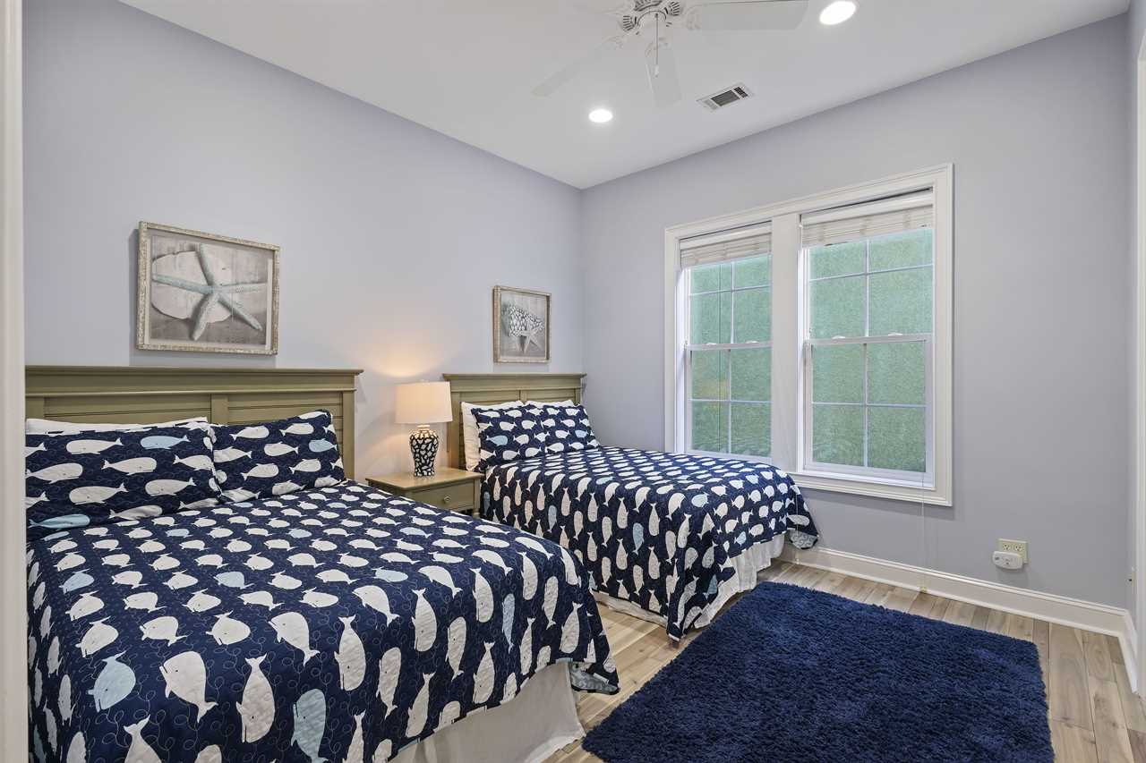 Bedroom 3 - Two Double beds, Jack-and-Jill bathroom with walk-in shower and dual vanity, shared with Bedroom 4