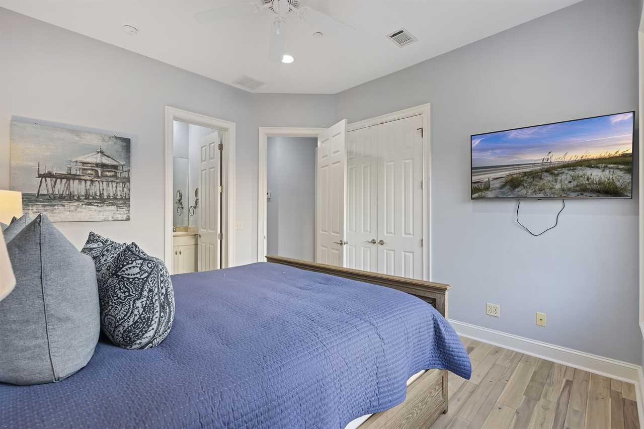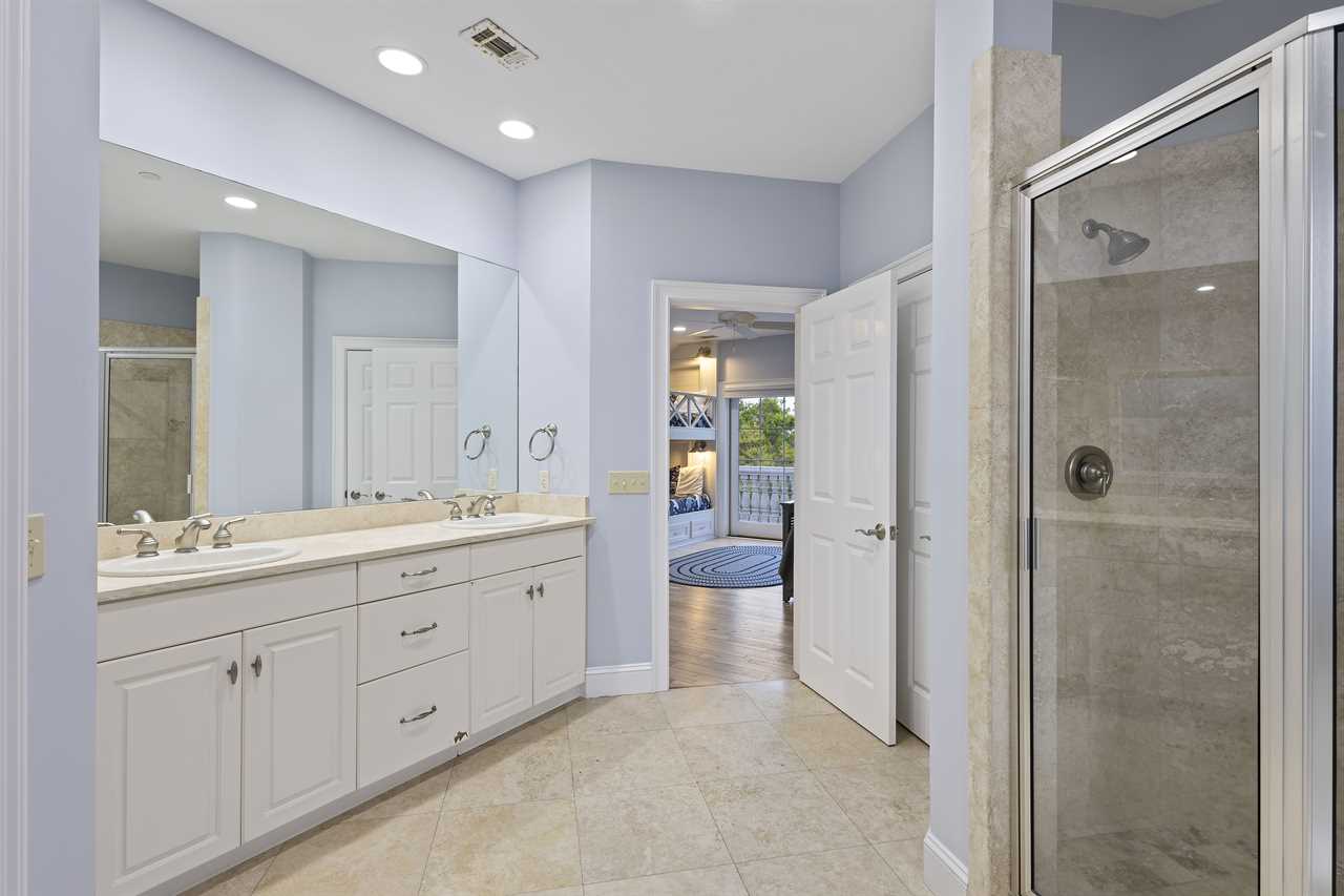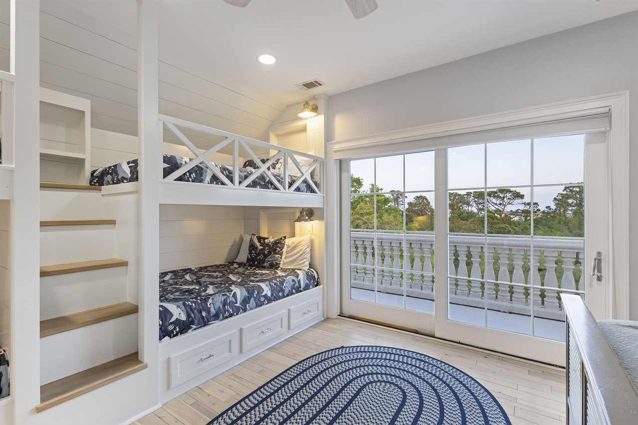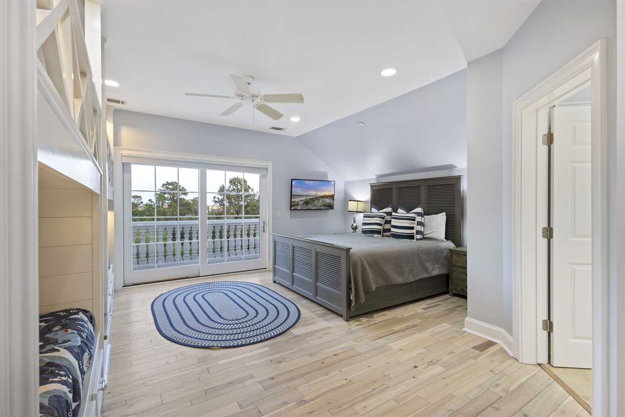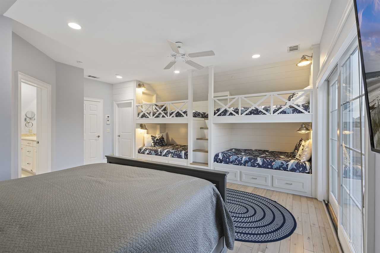 Bedroom 6 - King bed + 2 Custom Built Full-over-Full Bunk Beds (Sleeps 10), private balcony and en-suite with walk-in shower, soaking tub, dual vanity and separate water closet