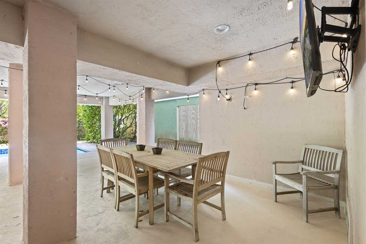 ✓ Covered patio with outdoor furniture and Smart TV