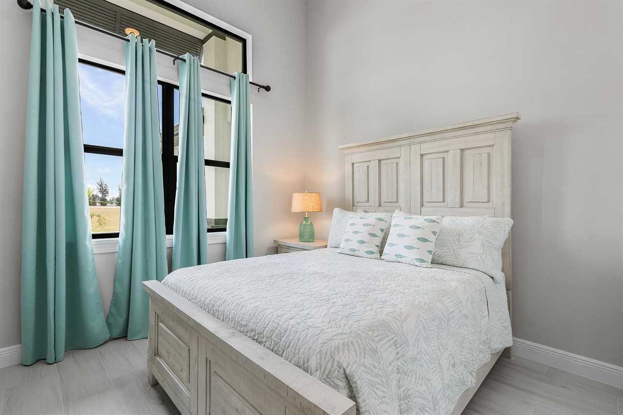 Guest Bedroom 1: Queen-size bed, Smart TV, Direct Pool Access