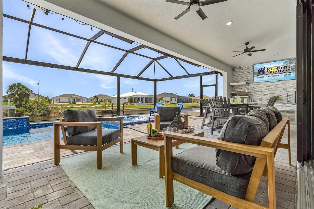 Screened Lanai with TV: Kick back on the lanai, catching up on your favorite shows while enjoying the tropical breeze and waterfront views.