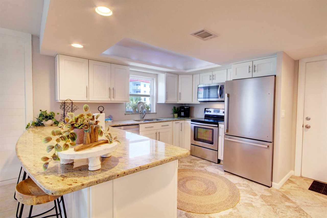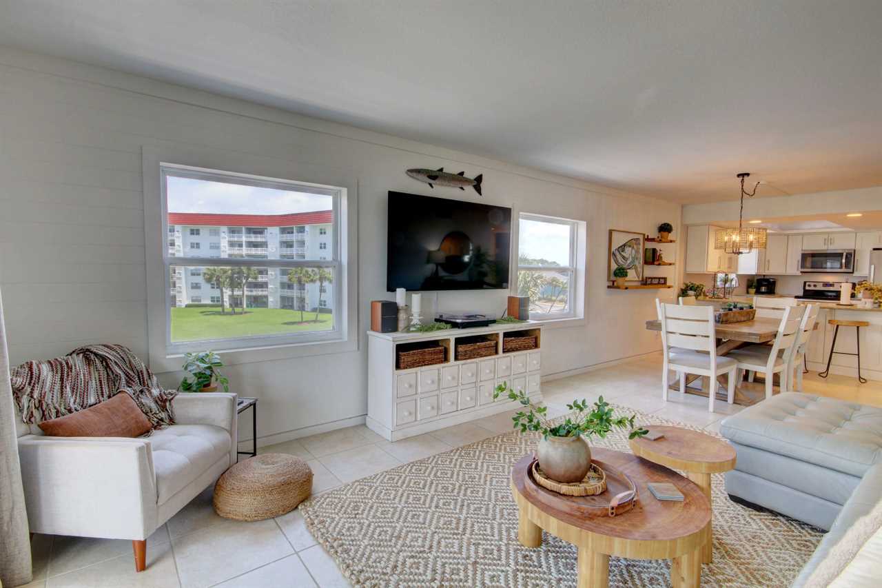 As you step inside, you'll be greeted by a warm and inviting ambiance, enhanced by the breathtaking views of the Gulf and the pool. The spacious living area is perfect for unwinding after a day of sun and sand, featuring a cozy seating arrangement and a record player with a collection of records for your enjoyment, adding a nostalgic touch to your stay.