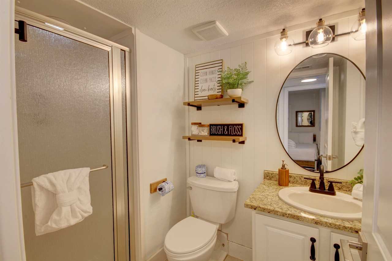 The master bedroom boasts a luxurious king-sized bed, while the guest bedroom features two full beds, accommodating up to six guests comfortably. Each bedroom is designed for relaxation, ensuring a restful night's sleep.