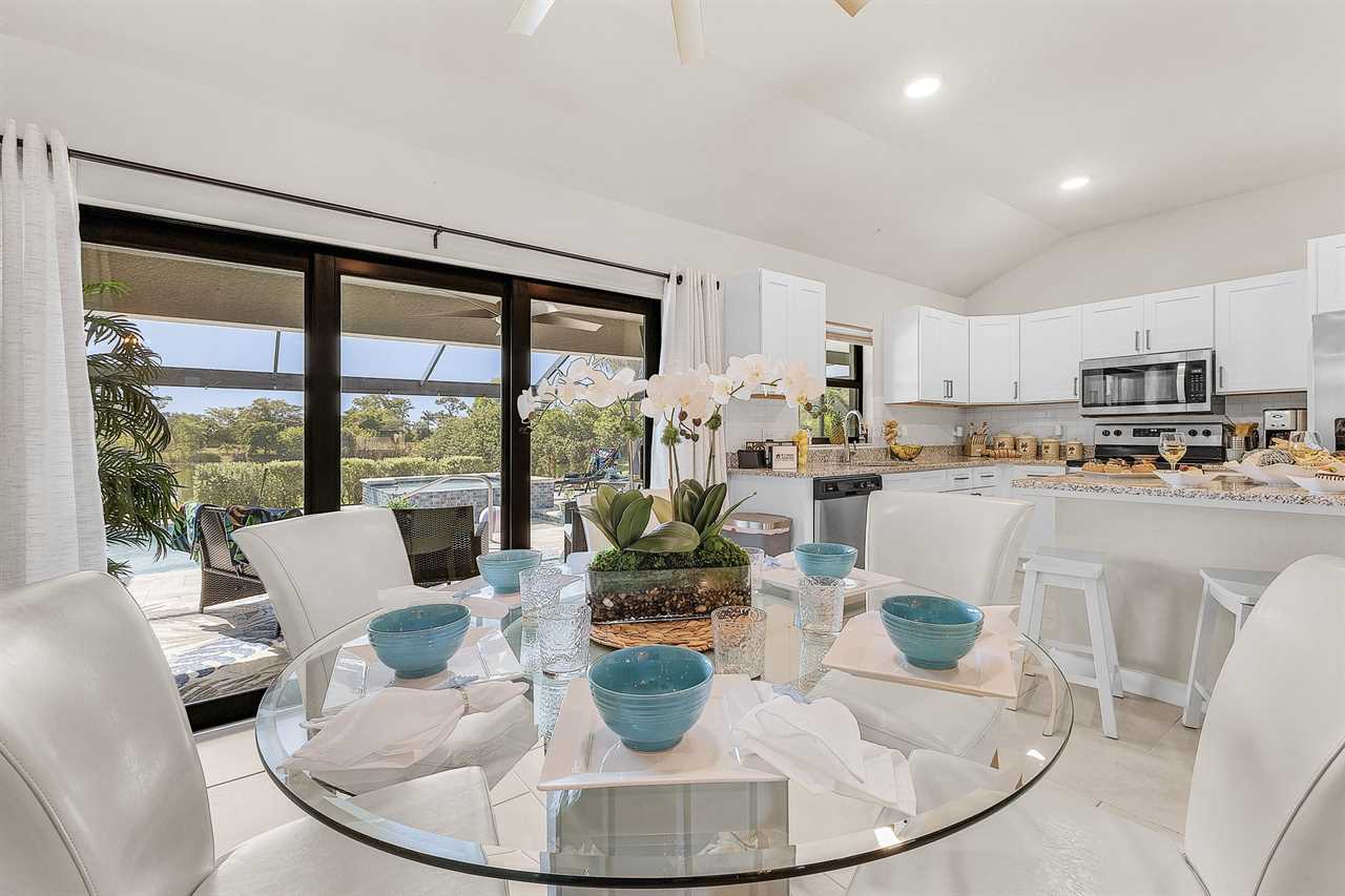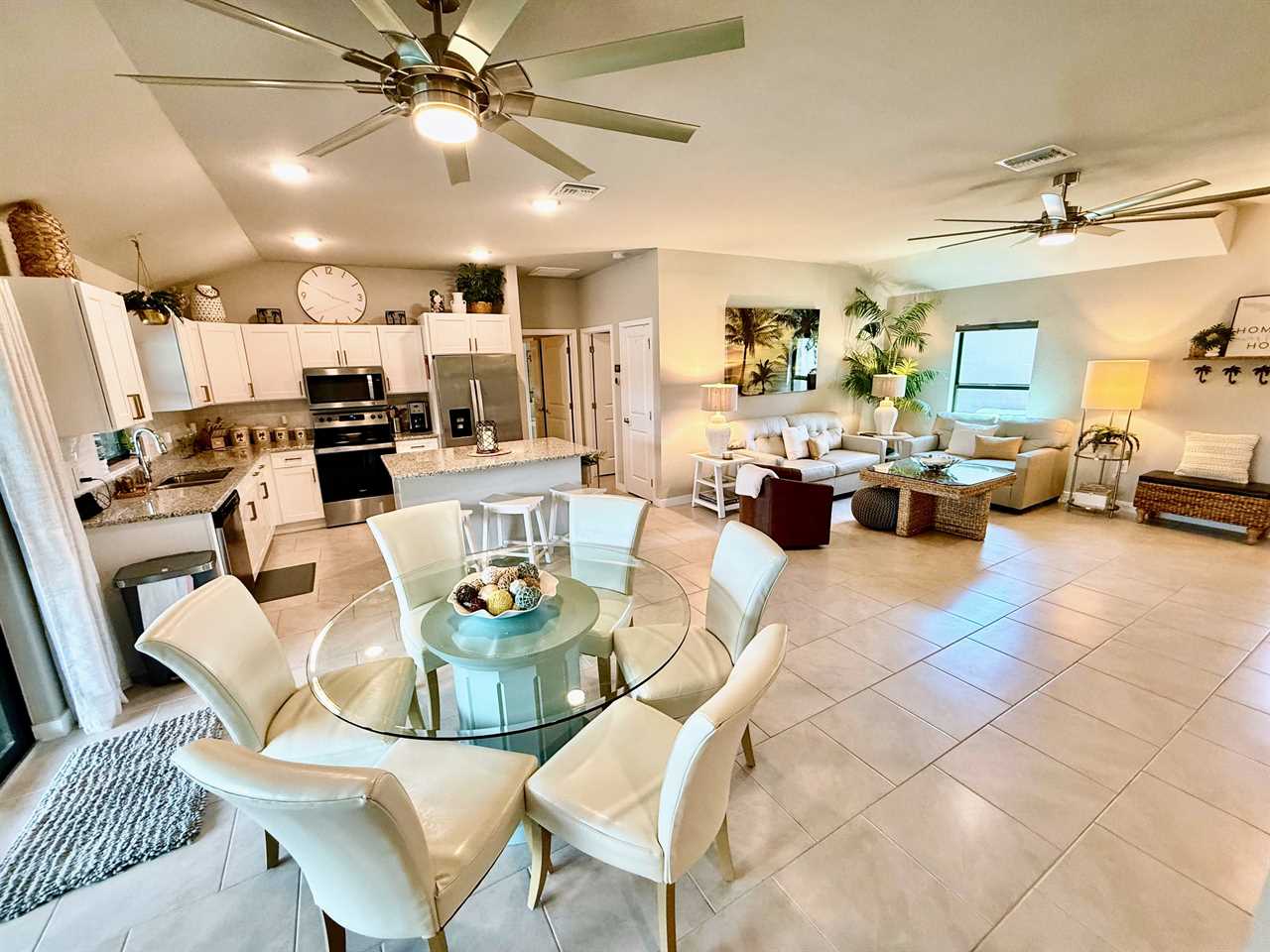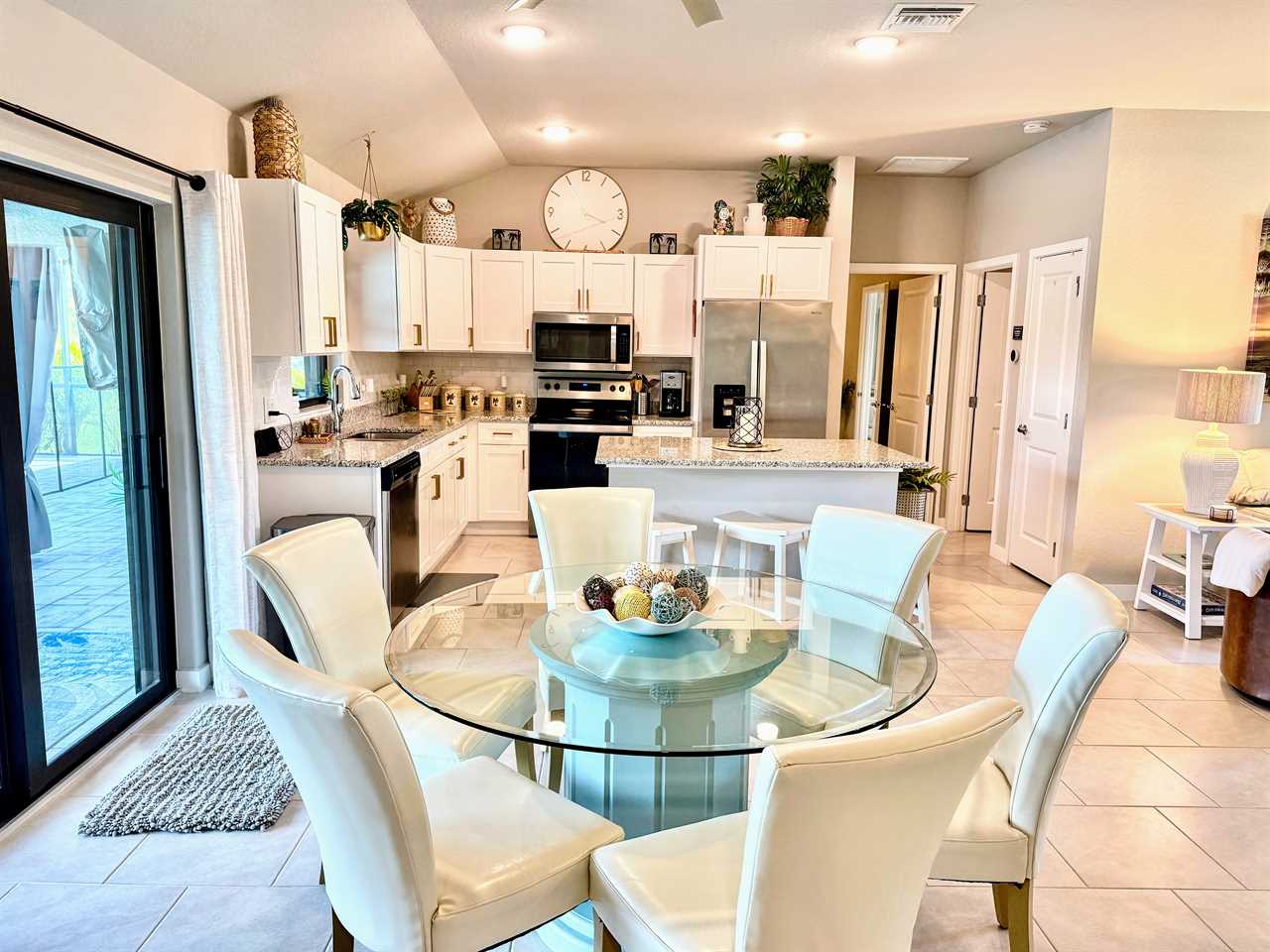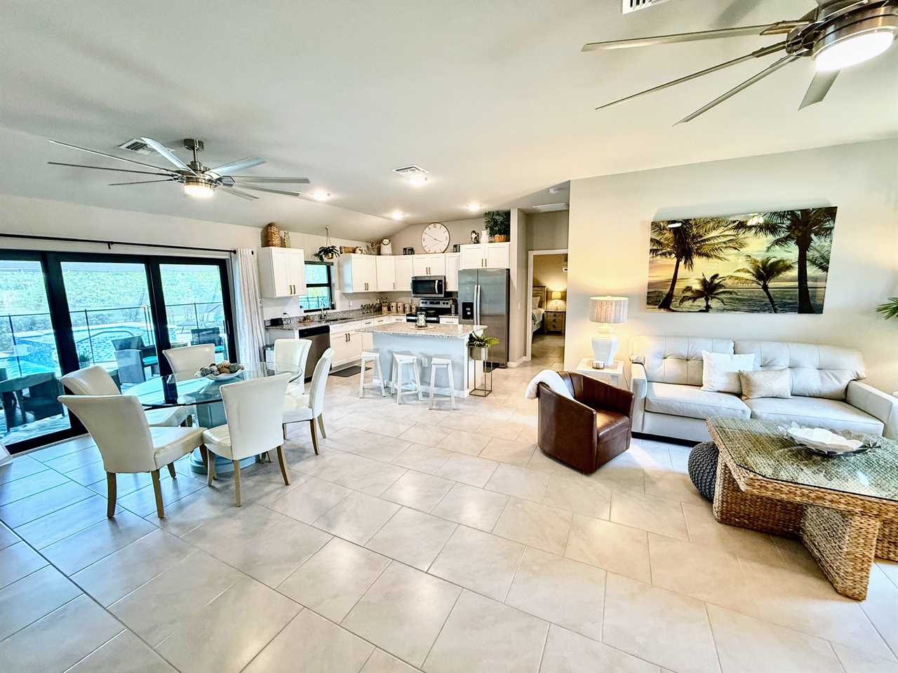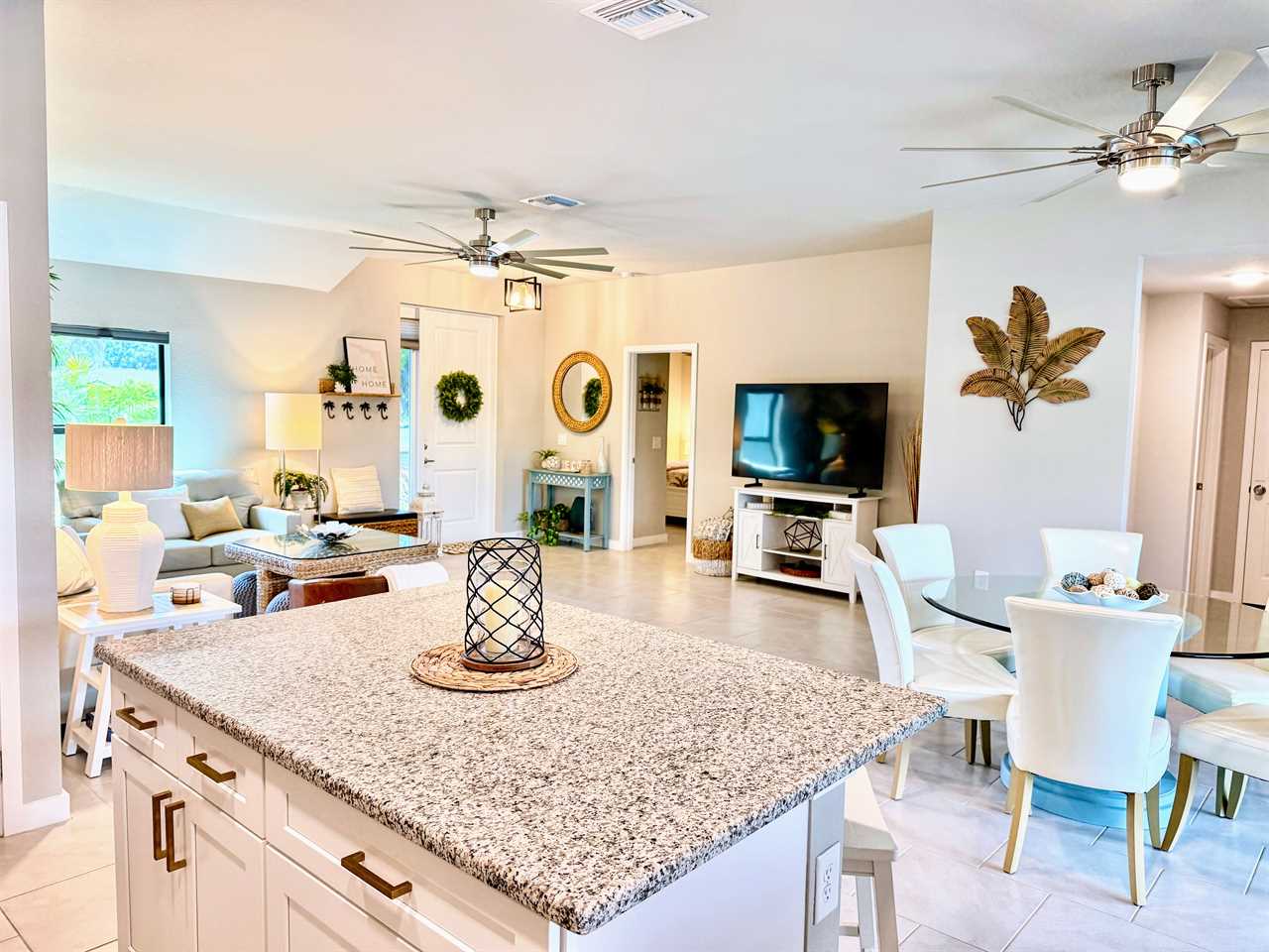 Casual Elegance/Open concept Living: Welcome home! Step into comfort and a Florida style vibe that instantly puts you in vacation mode. The sleek, fully stocked kitchen is perfect for culinary creativity, while the spacious, open-plan living area keeps everyone connected—ideal for sharing meals, laughs, and good times.