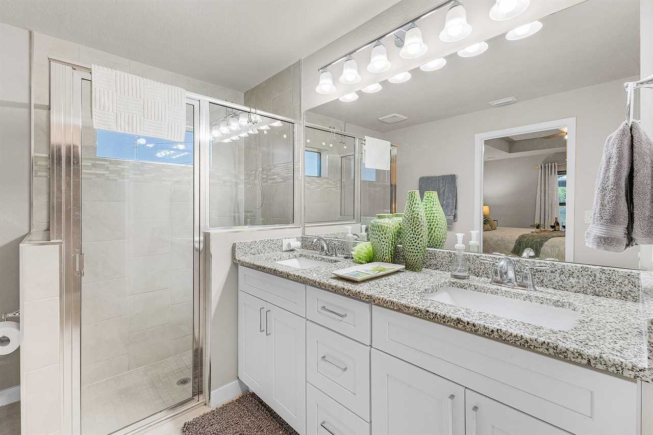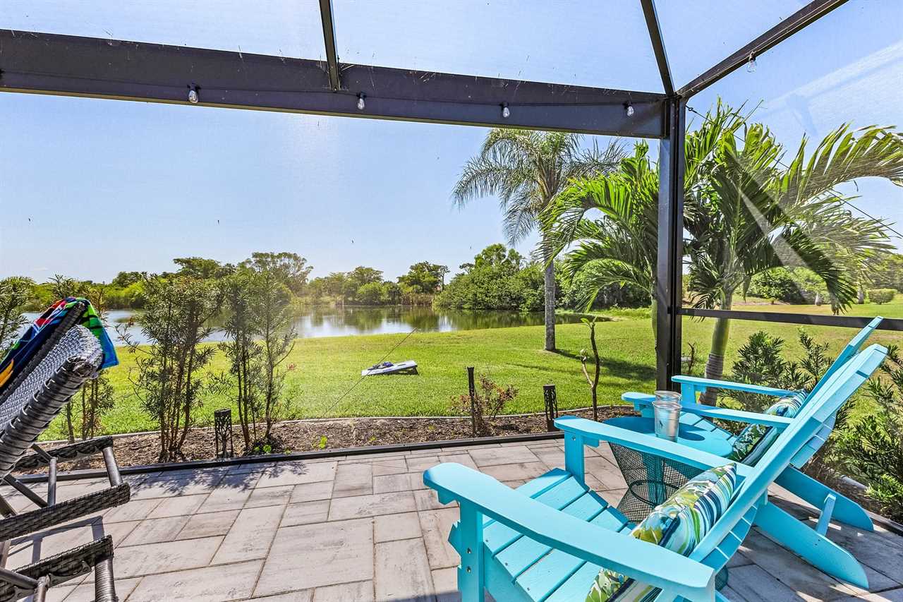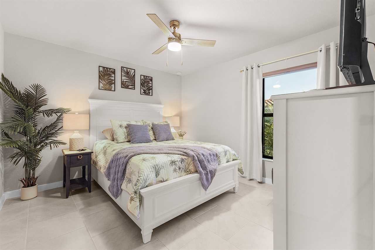 Expansive Lanai with Grill and TV: Enjoy outdoor living with a shaded lanai, perfect for watching your favorite shows while soaking in cool breezes and lush palm views. The Lanai was designed with fun and relaxation in mind. Bring on happy hour with cocktails and let the grill master showcase their skill as you fire up the outdoor kitchen for al fresco meals, good times and laughter at the end of an adventurous day — the ultimate backyard retreat.
