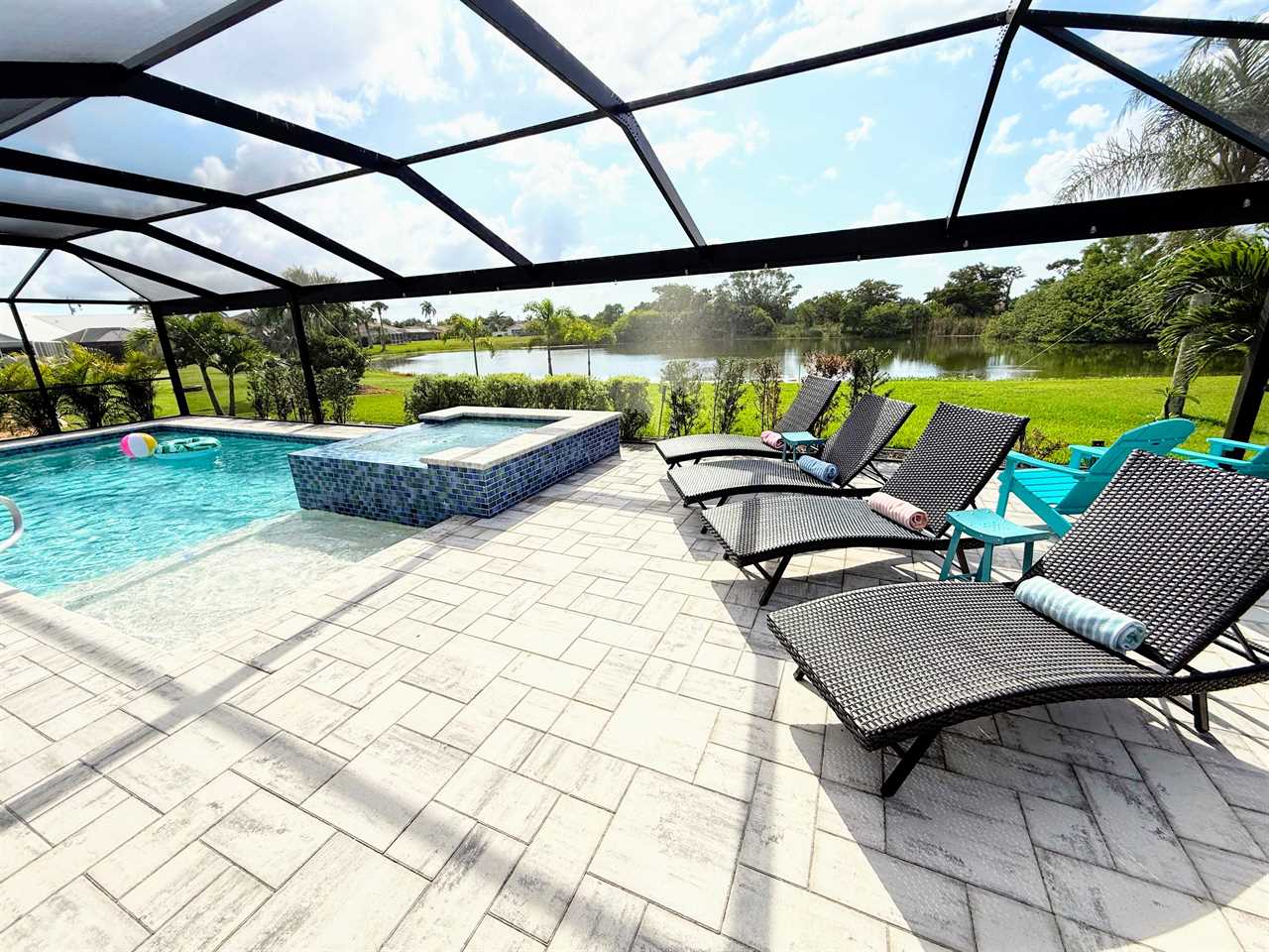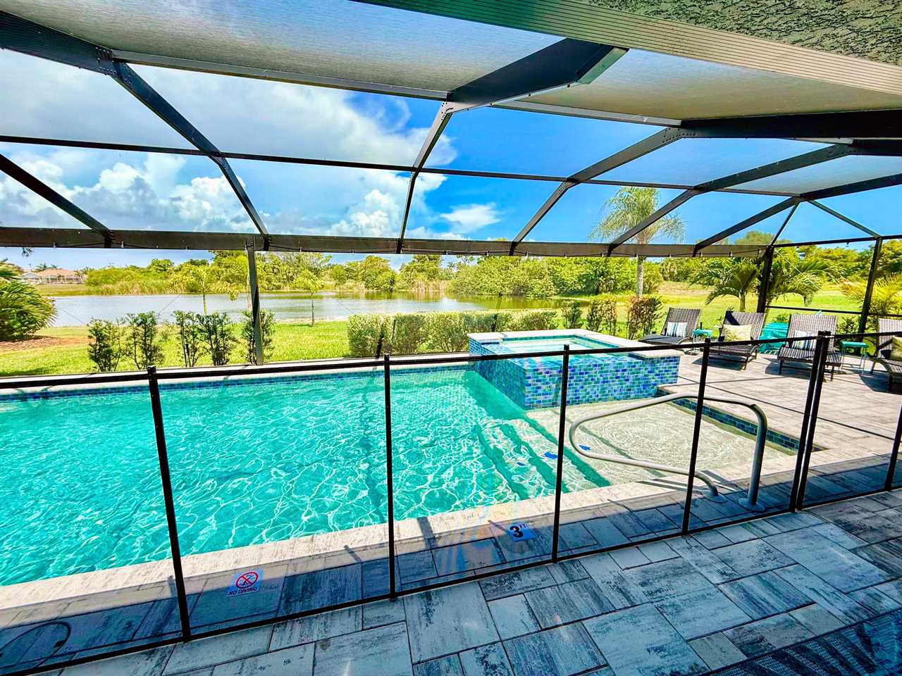 Heated Saltwater Pool & Spa: Jump into the sparkling, temperature-controlled pool or unwind in the bubbling spa—your private South facing oasis under the Florida sun.