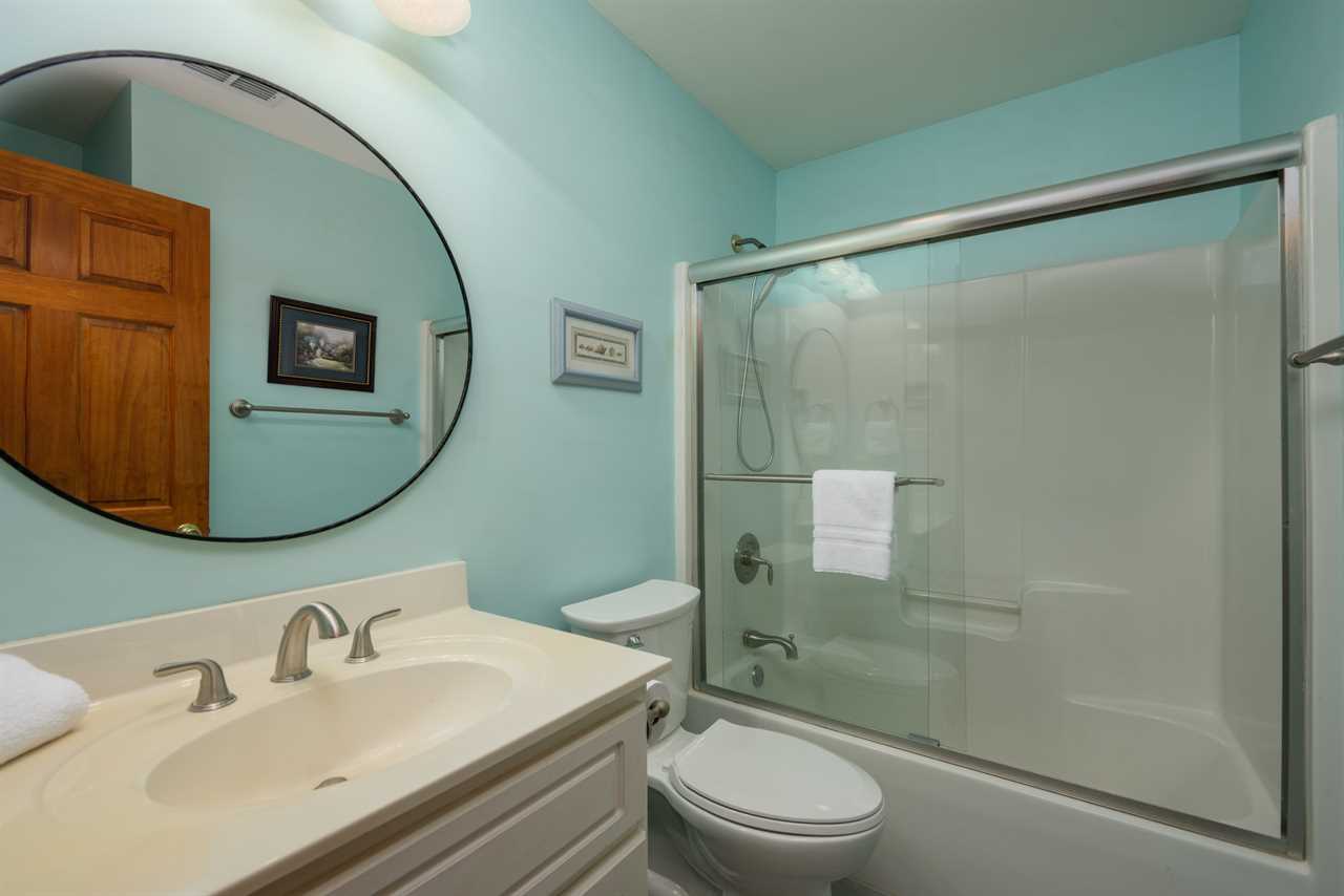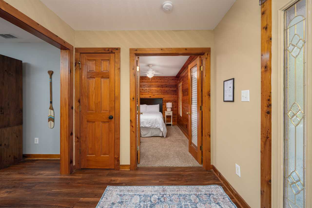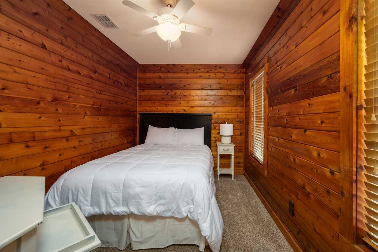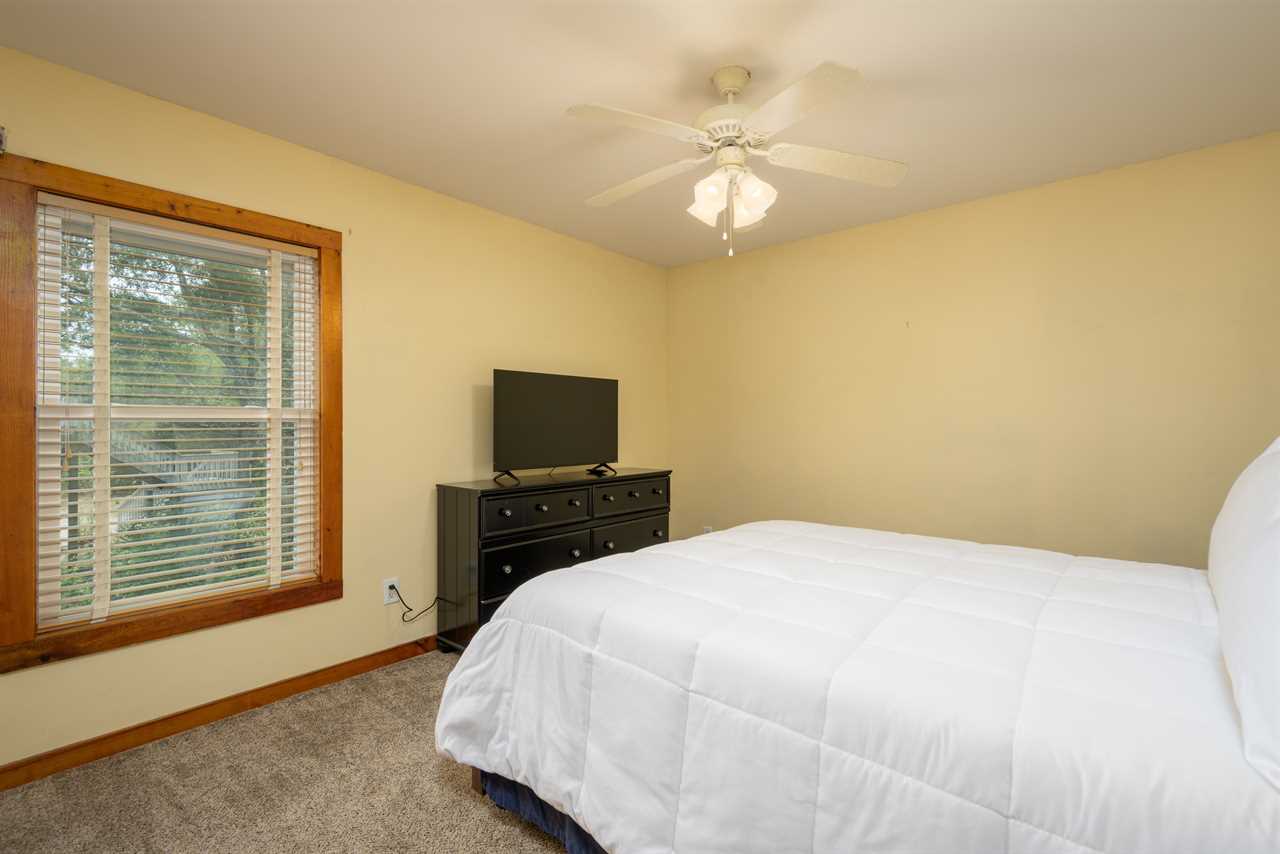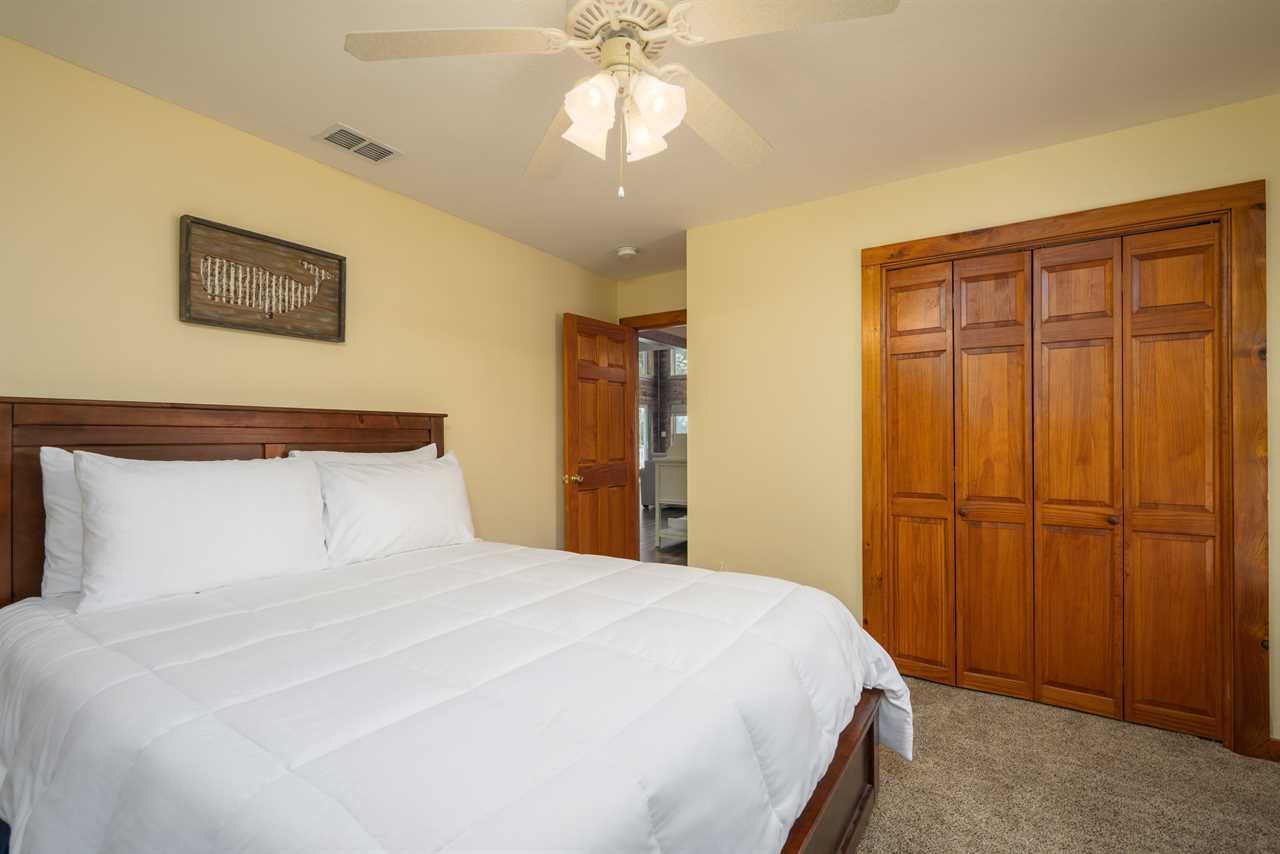 Main Floor Guest Bedrooms – Three additional rooms featuring a king bed and two queen beds, sharing a bathroom with a tub/shower combo