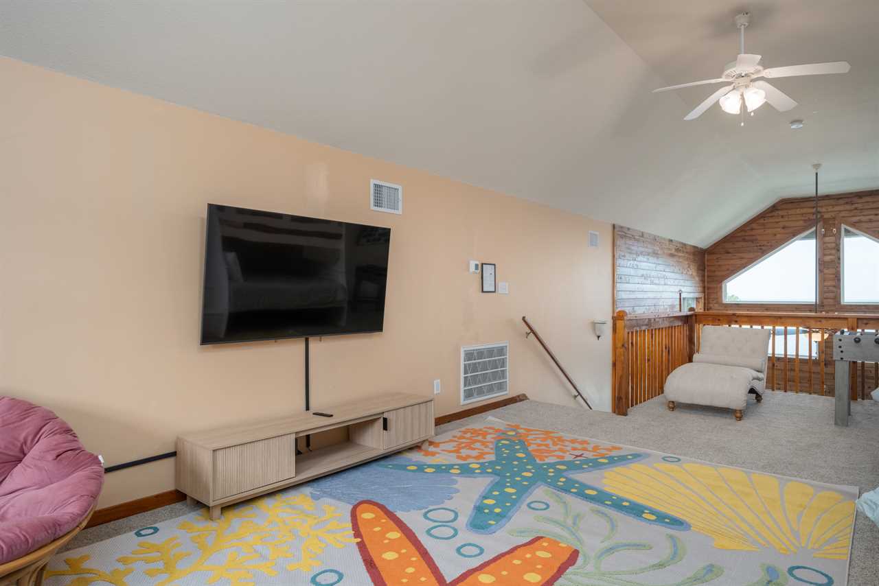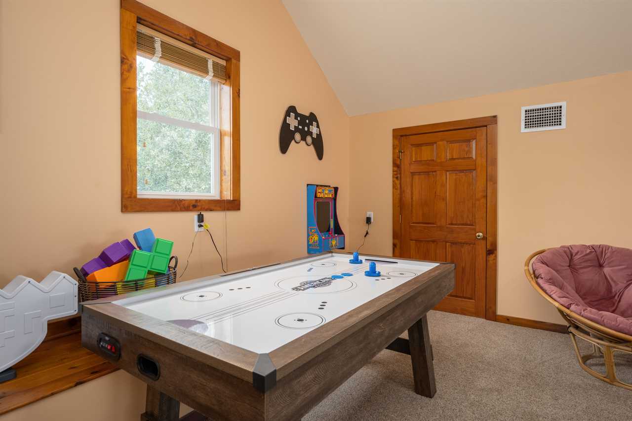 Entertainment Paradise The upstairs loft is packed with fun—foosball, air hockey, and a classic Ms. Pac-Man arcade machine! Plus, a half bath adds extra convenience.