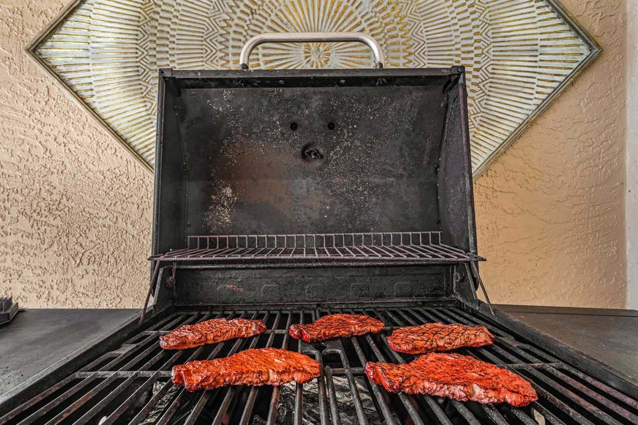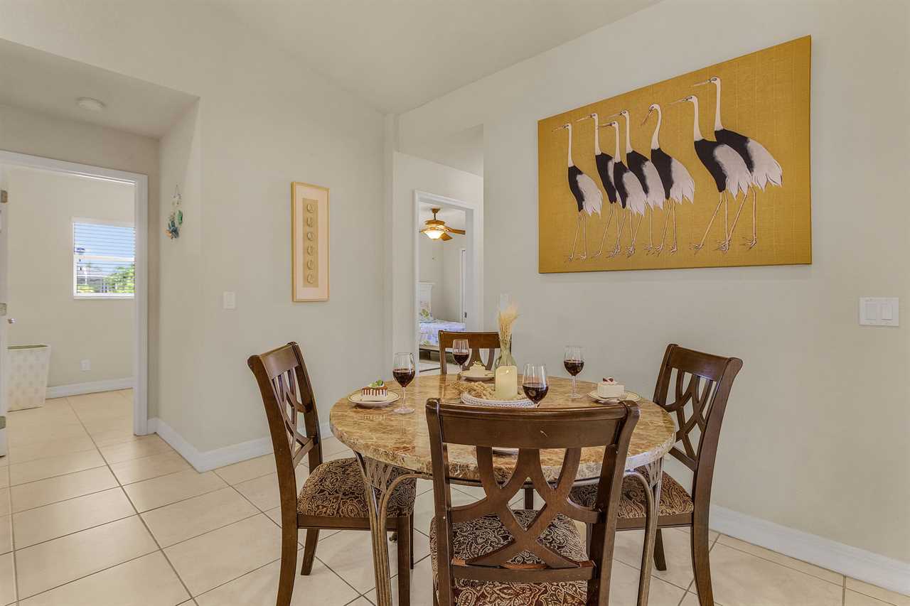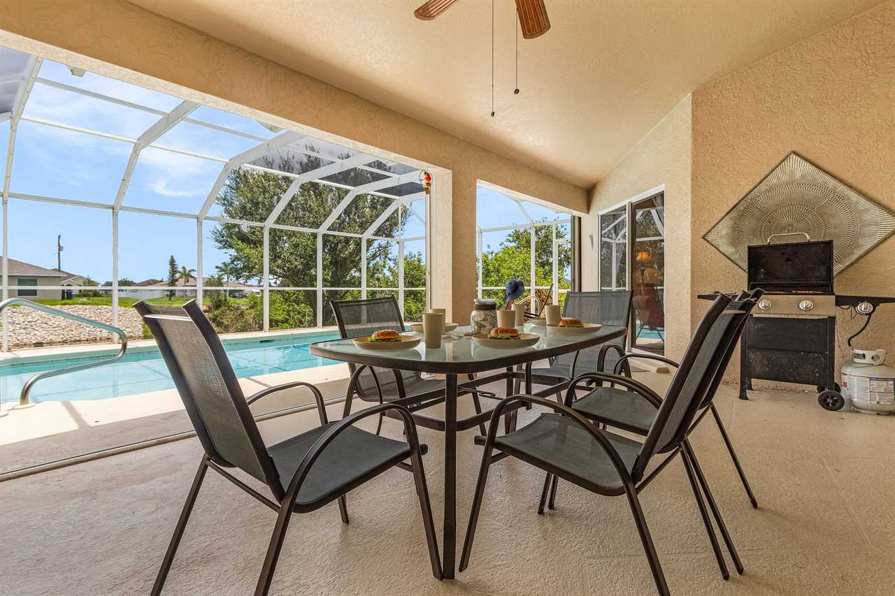 Lanai Living: Unwind on the shaded lanai with a grill, ideal for meals or quiet moments by the water. The outdoor space enhances your dining experience with scenic views.