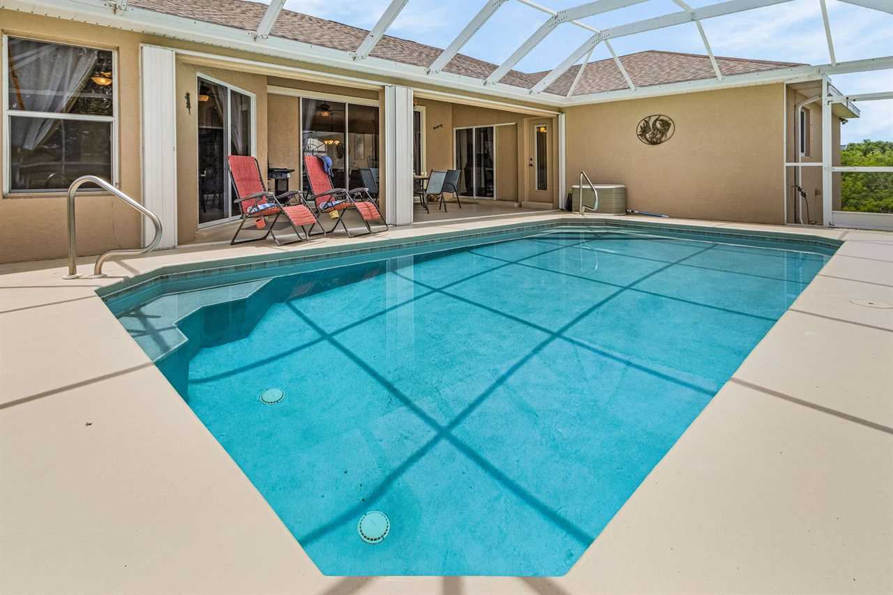 Heated Pool: Enjoy a refreshing dip in your private heated pool, perfect for any season. The pool area offers a sunny retreat for lounging or playful splashes.
