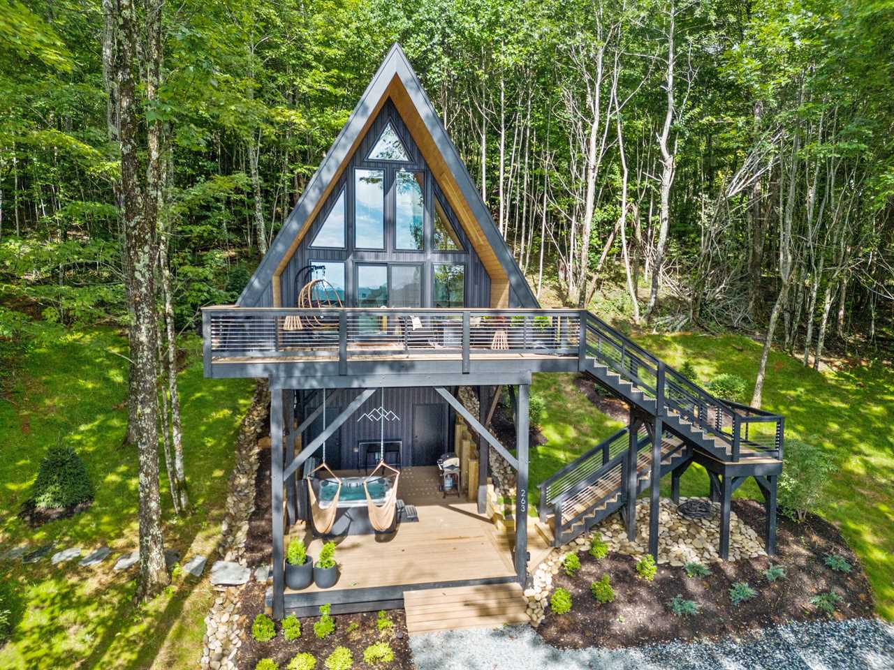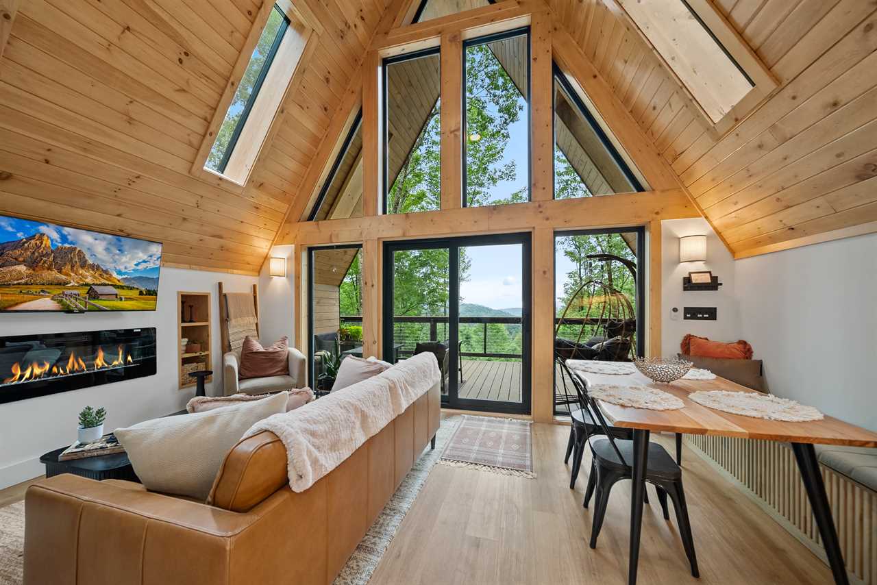 Tucked away on 22 acres of private forest on Howard's Knob, the mountain overlooking downtown Boone, this elevated A-frame tree house is a modern mountain retreat designed for romance, relaxation, and reconnection. Just minutes from all the action yet completely hidden in nature, this one-of-a-kind escape blends sleek, modern design with the warmth and charm of a woodland hideaway.