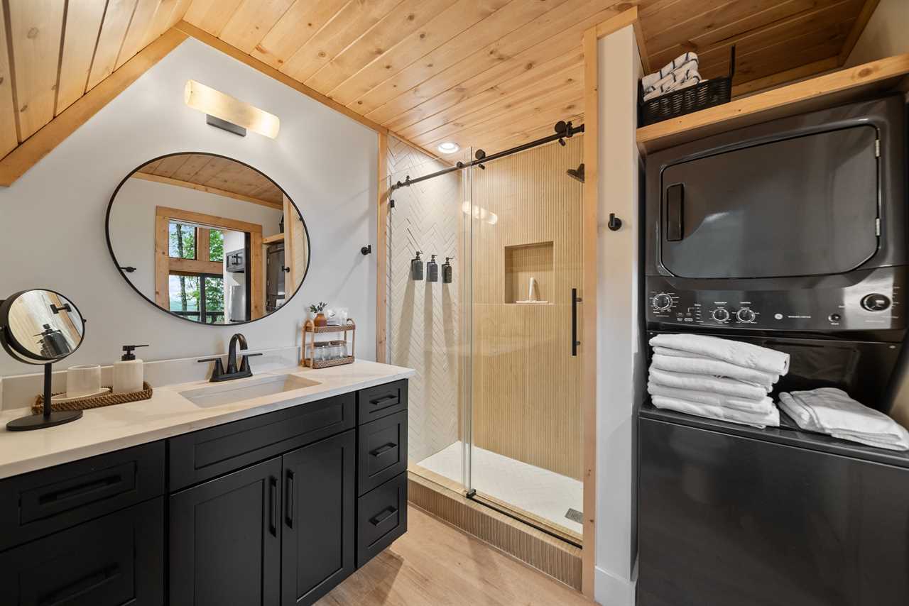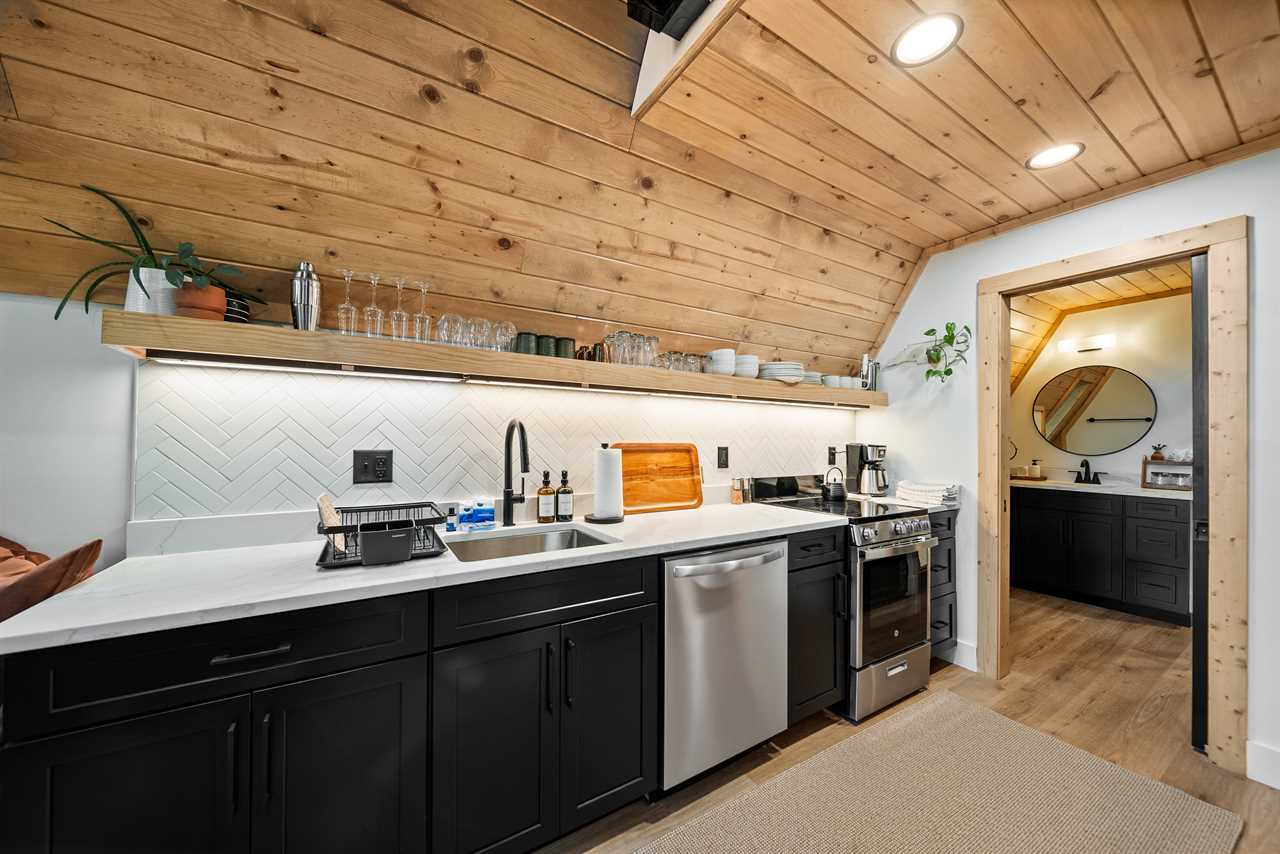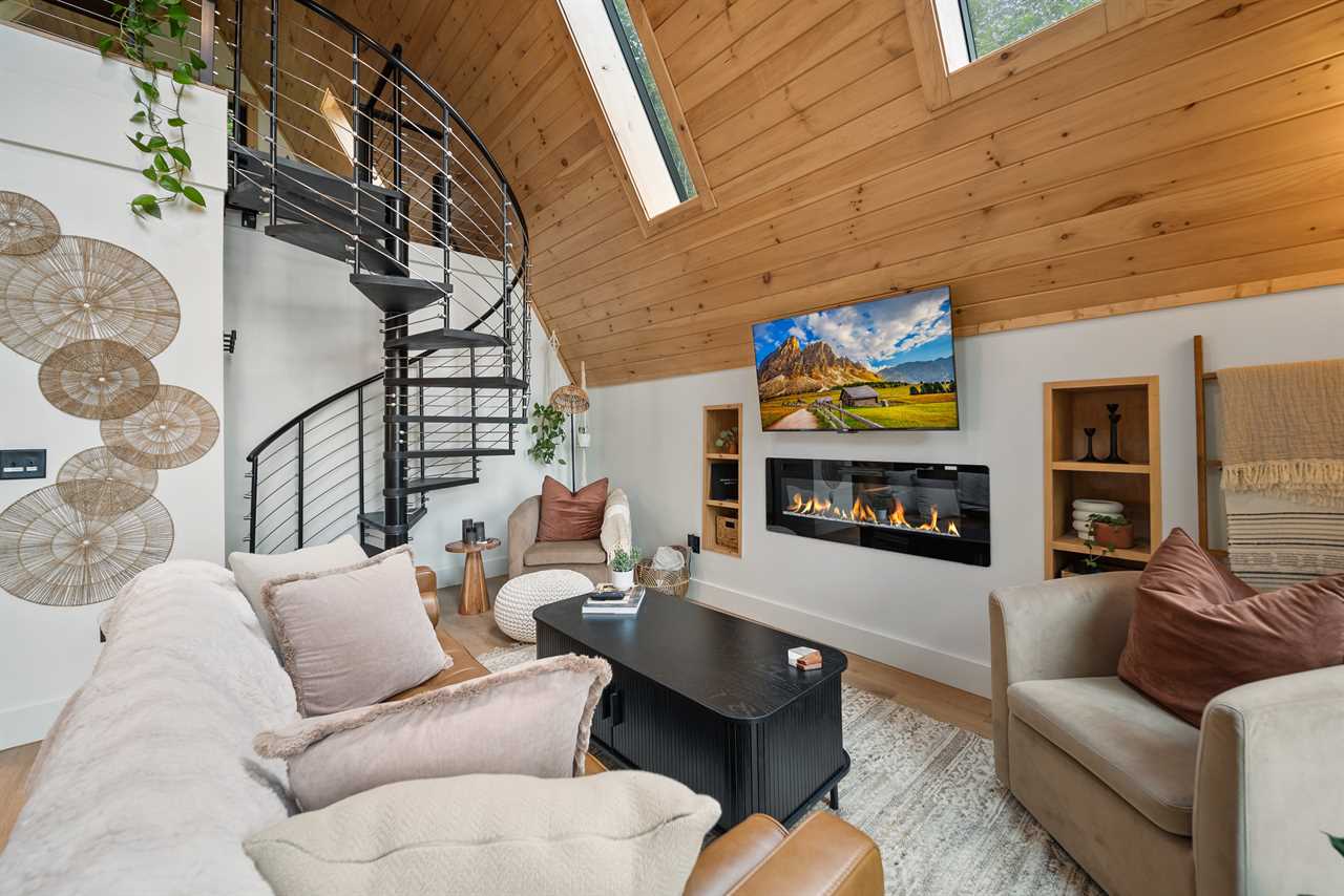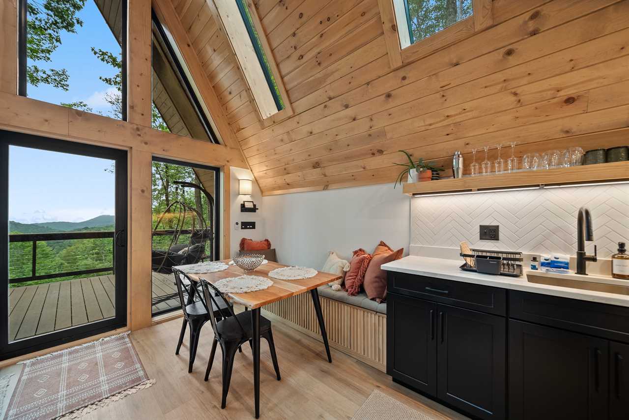 The fully equipped kitchen has everything you need to prepare meals together, while high-speed fiber Wi-Fi lets you stay connected (if you choose to be). Kick back and enjoy your favorite shows on the TV mounted above the electric fireplace. But the true magic lies just outside your door: soak in the private hot tub surrounded by trees, drift off in the swings mounted under the deck by the hot tub, share drinks by the propane fire table on the deck, or cozy up around the wood-burning fire pit under a canopy of stars.