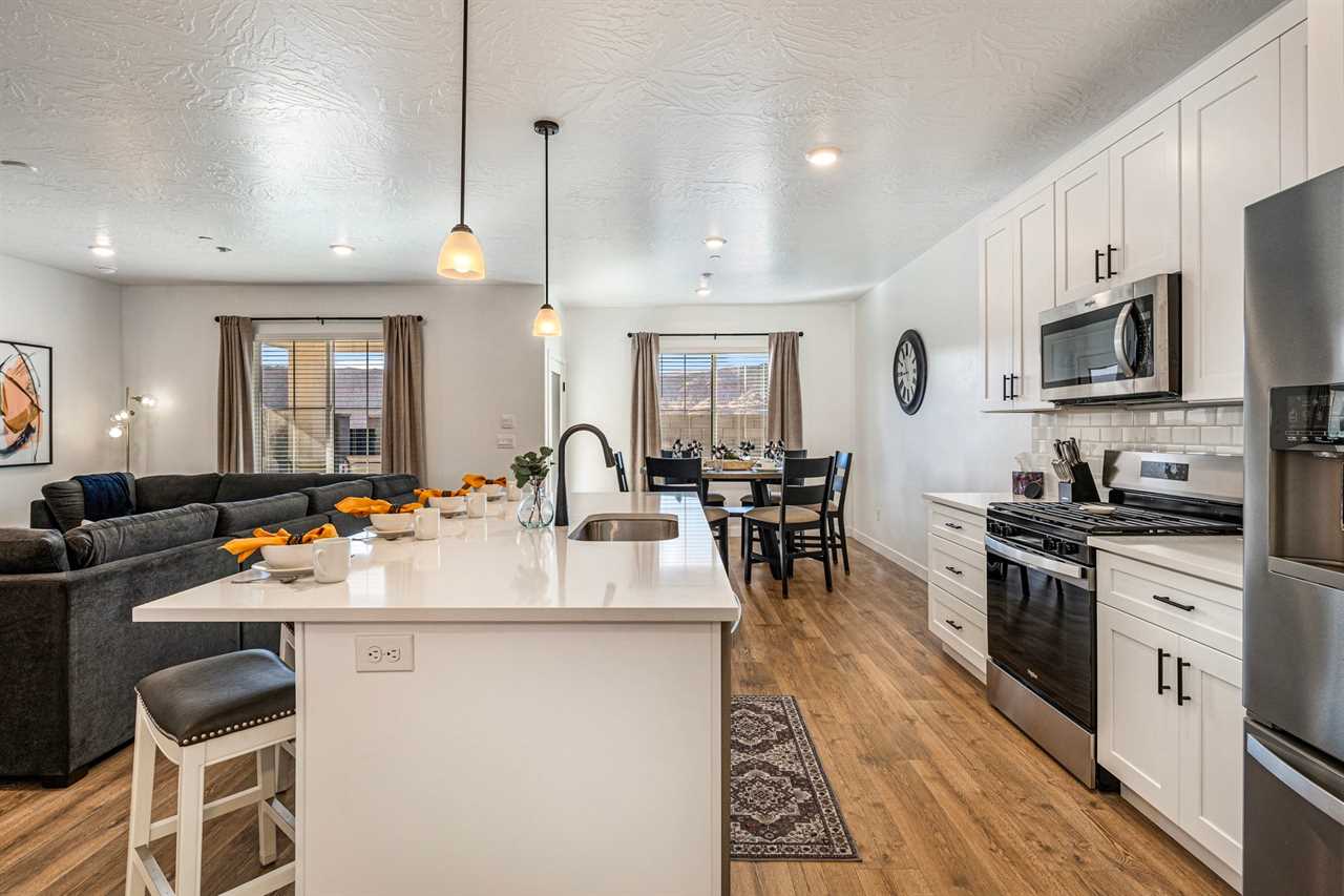 Located just minutes from Sand Hollow Reservoir, Quail Creek State Park, and the fun of JellyStone Water Park, Zion Narrows Landing is a vibrant 4 bedroom vacation home, that can sleep up to 15 guests, and the ultimate getaway for outdoorsy travelers and water lovers alike. This home is stocked with everything you need for fun in the sun—including paddle boards, boogie boards, pool noodles, life jackets, and folding chairs—ready to go for a day at the lake or a riverside adventure!