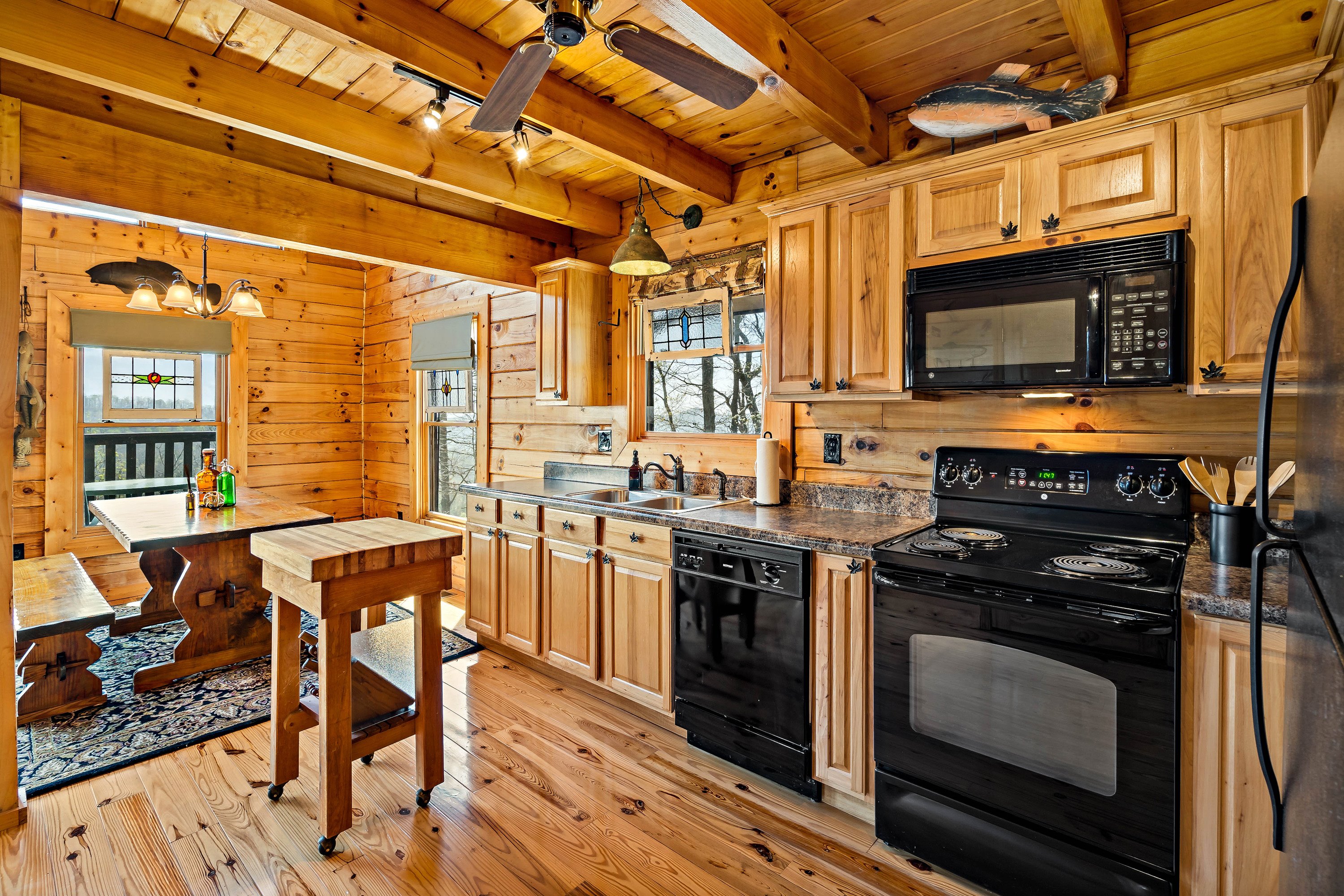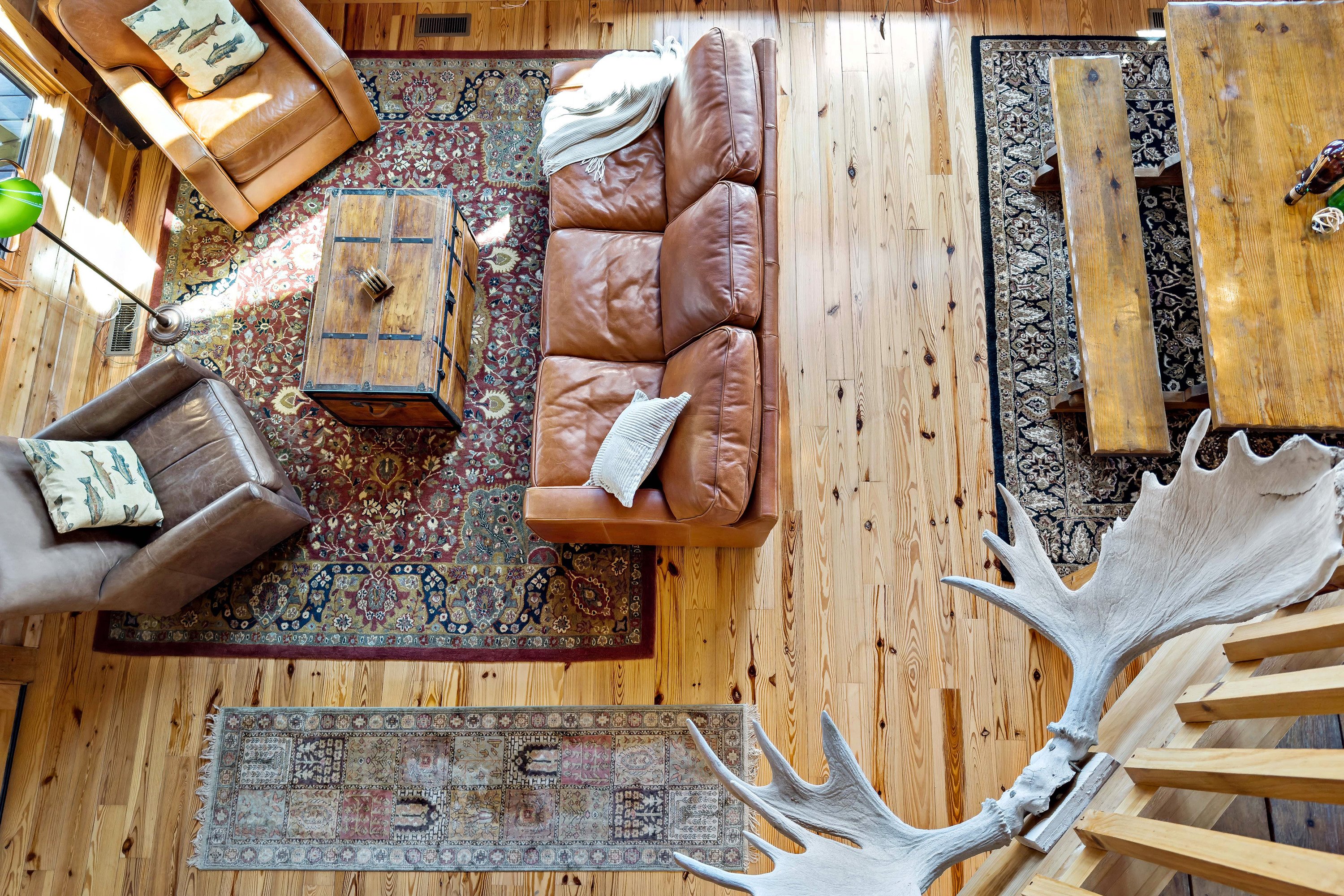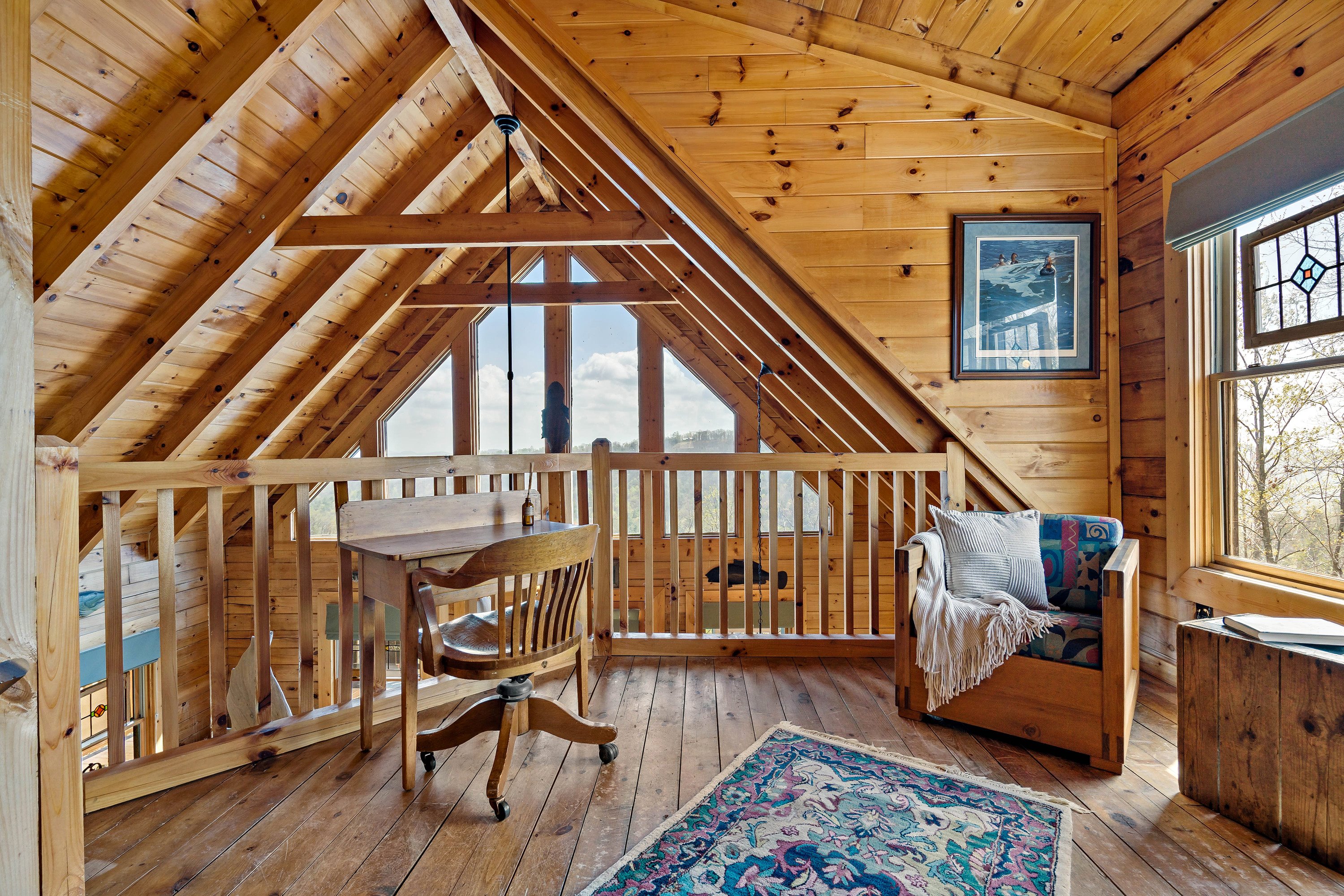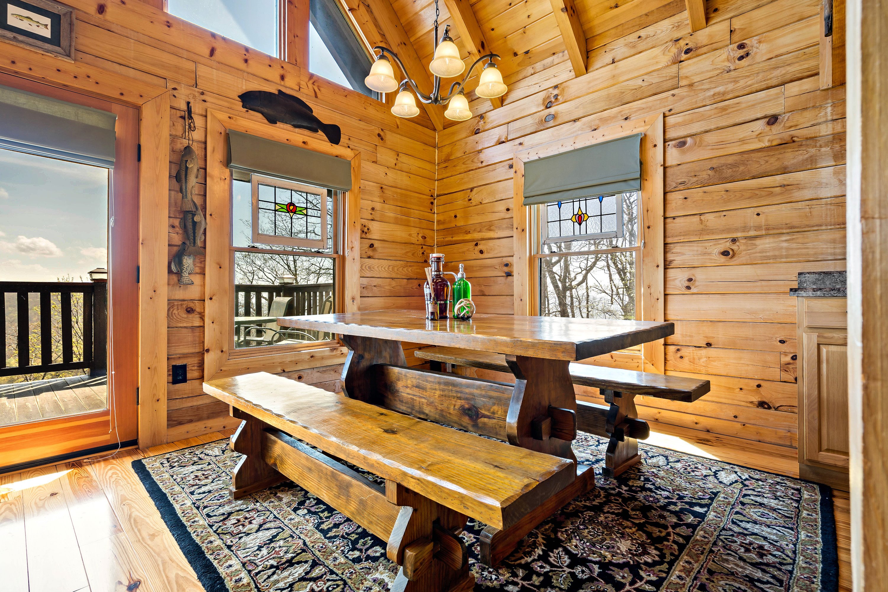 Take in majestic mountain views from two decks, including a screened-in lower porch with direct access to the fire pit. Ideal for morning coffee or starry-night marshmallow roasting.