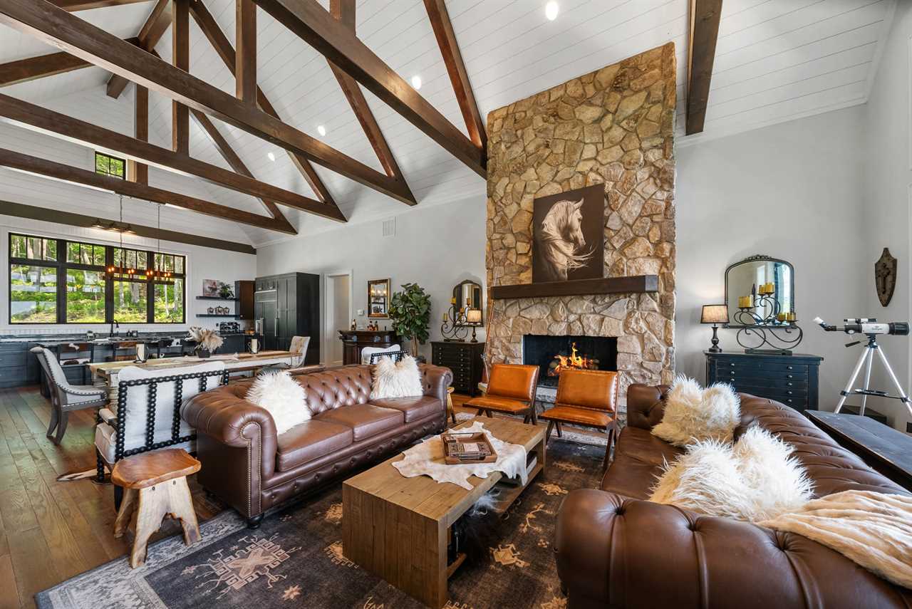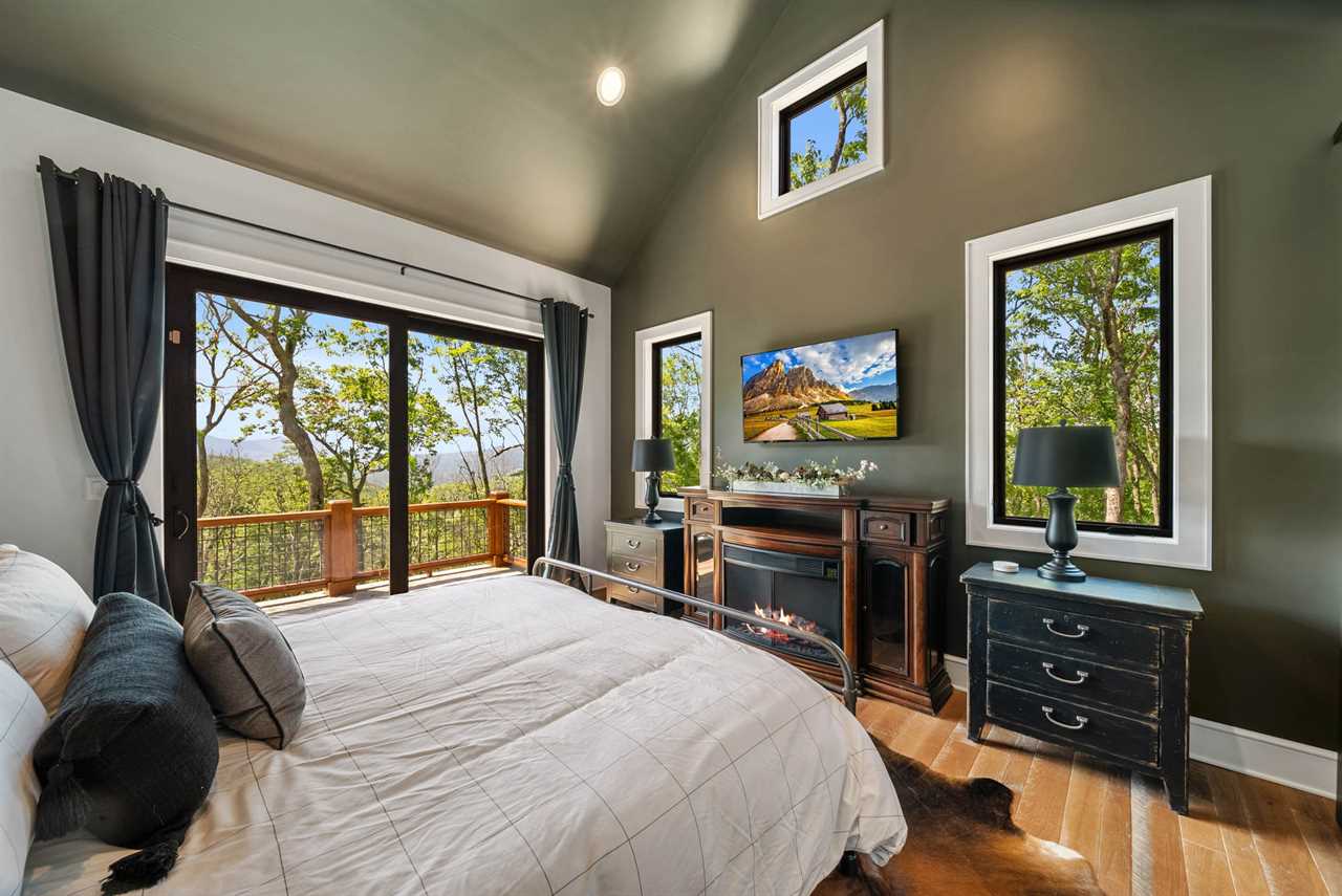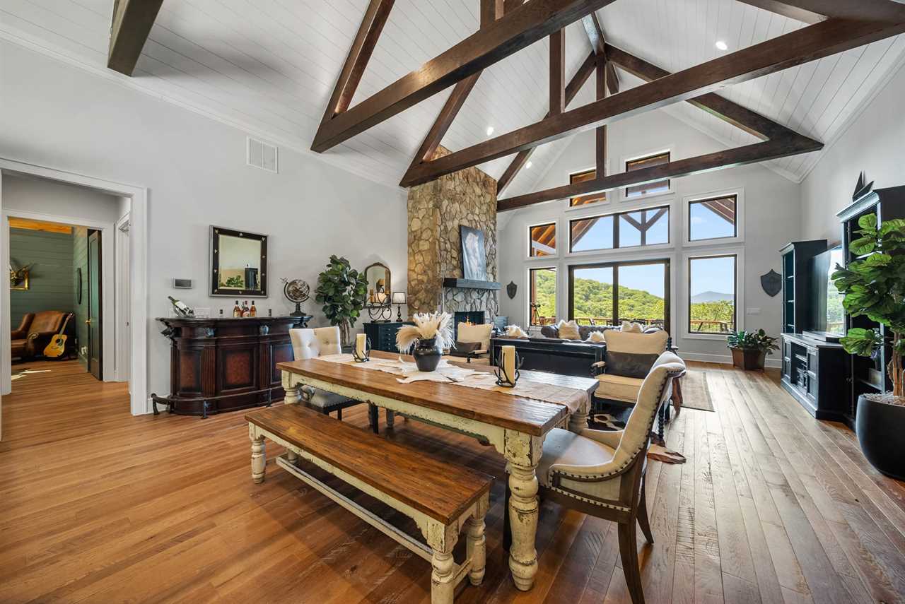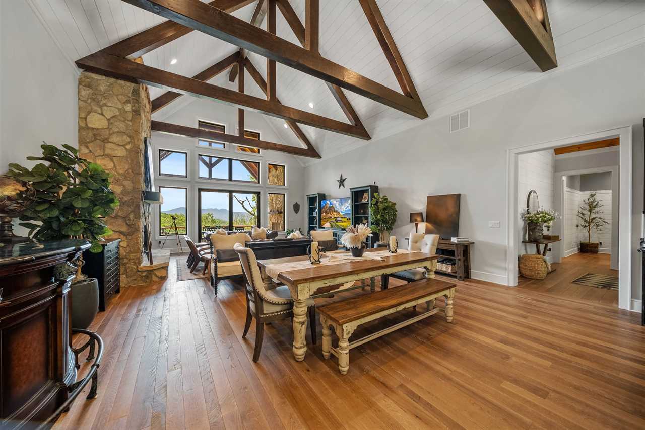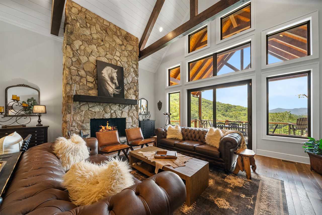 - Soaring Great Room: Cathedral ceilings, a massive stone fireplace, and walls of windows framing Grandfather Mountain.