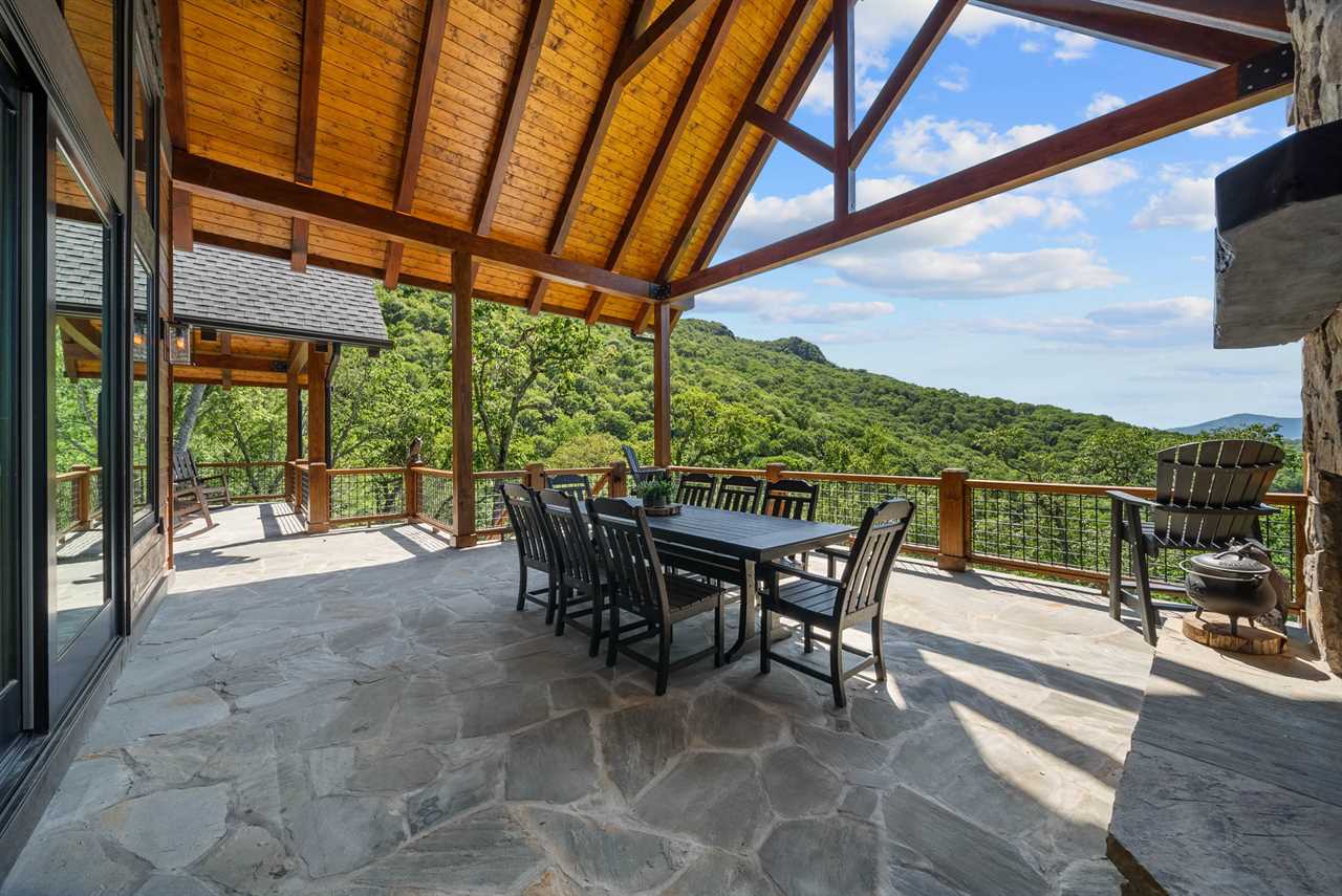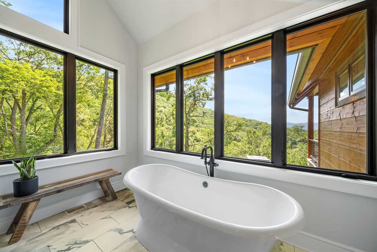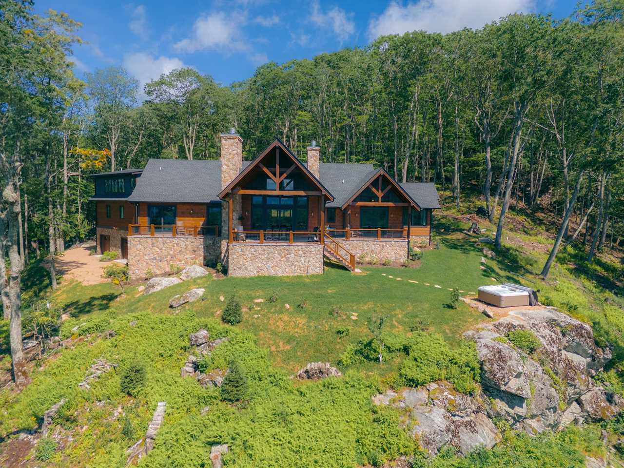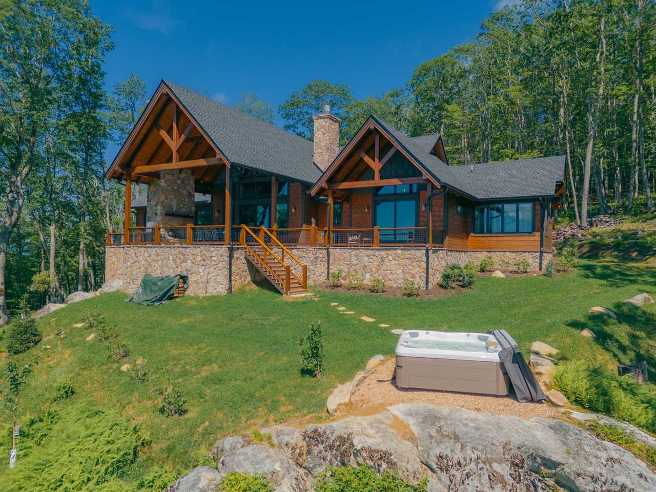 - Soaring Great Room: Cathedral ceilings, a massive stone fireplace, and walls of windows framing Grandfather Mountain.