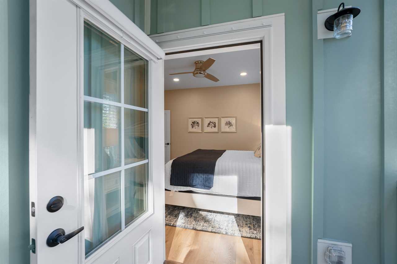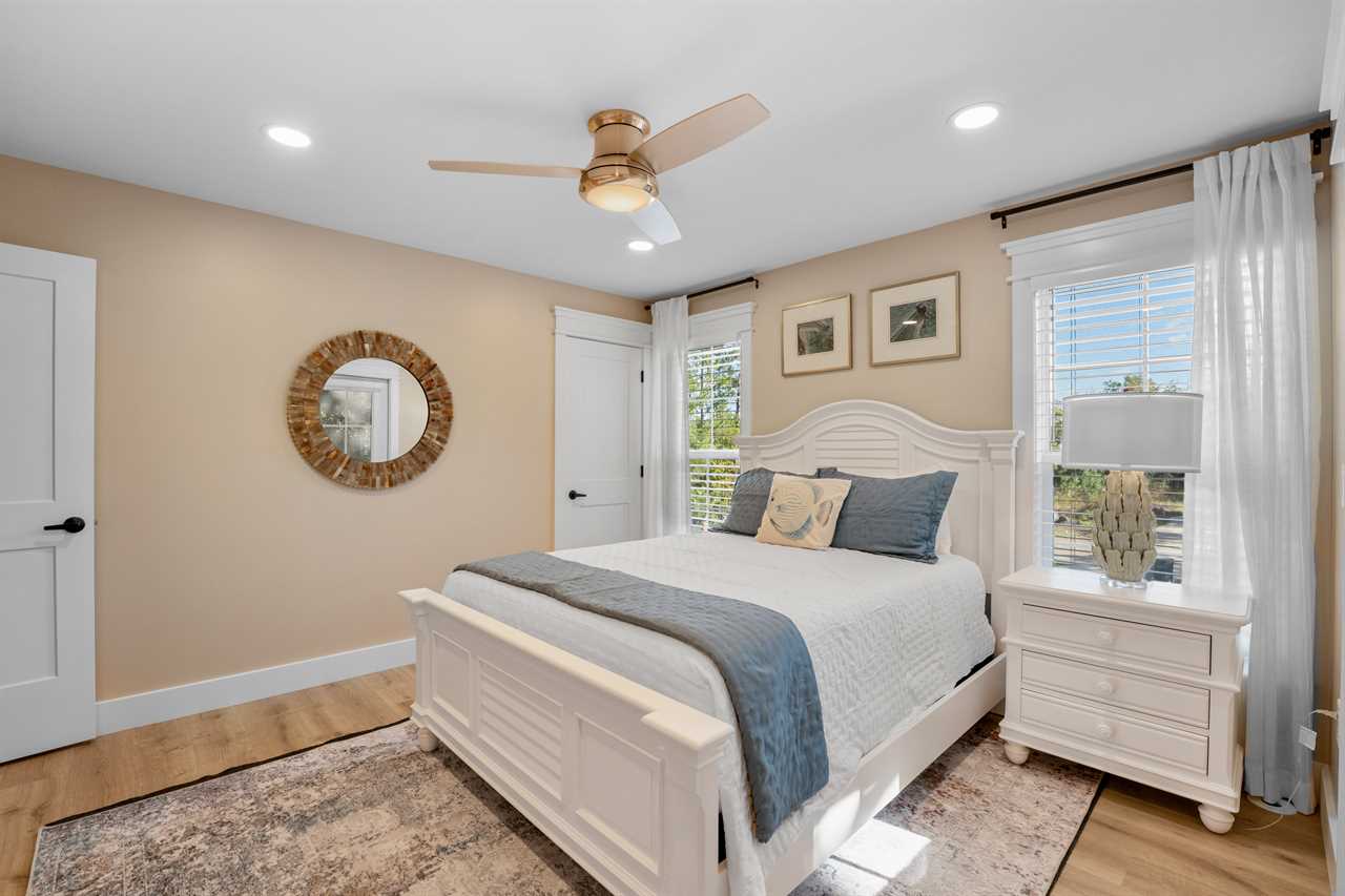 The second level is home to the Primary Bedroom, featuring a King bed, en-suite bathroom with a double vanity, a spacious walk-in shower, and access to a cozy screened porch—perfect for morning coffee or an evening unwind. A convenient half bath is also located nearby, just off the kitchen area.