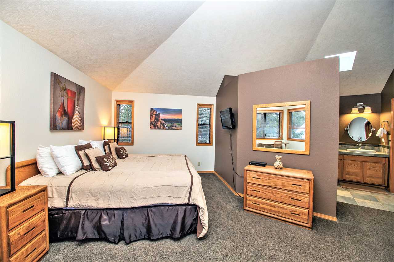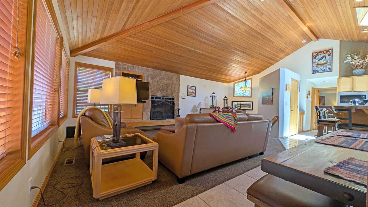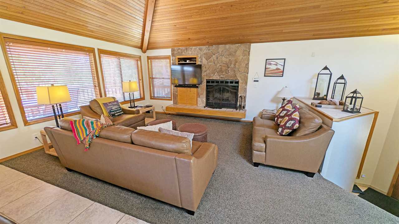 Welcome to Red Cedar 53, a charming retreat nestled in the heart of Sunriver. This split-level home offers a classic Sunriver experience with its stone fireplace, vaulted wood-panel ceilings, and expansive windows that flood the space with light. Whether you're here for skiing, hiking, or simply relaxing, you'll find everything you need for a memorable stay, including SHARC passes for family fun and a sunny deck perfect for grilling and unwinding.